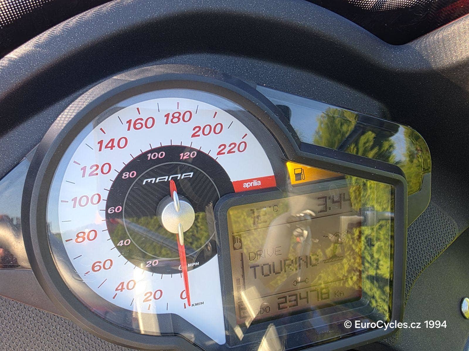 Špičková Mana GT. Nepoškozený, nehavarovaný, pečlivě servisovaný motocykl. Automatická převodovka s možností standardního řazení nožním pedálem, anebo sekvenčního řazení tlačítky na řidítkách, velký úložný prostor, ABS. Původ ČR, malý nájezd kilometrů, jen dva majitelé. V červenci 2025 větší servis: olej, filtry, svíčky, hnací řemen automatické převodovky. Možnost snížení výkonu na 35 kW a zpět na 56 pouze softwarem. Manuál v češtině.
