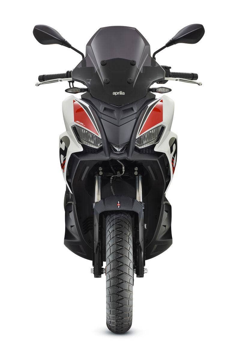 Výbava Aprilie SR GT Sport je plná exkluzivních detailů, které podtrhují její sportovní duši. Černý přední blatník, řídítka spolujezdce a spoiler v kombinaci s barvou předního štítu sahajícího až k zádi vytvářejí skvělý dynamický efekt. Matně černý středový tunel doplňují červené nápisy, zatímco červené ráfky kol a dvoubarevné černé sedadlo s červeným prošíváním podtrhují rozhodný charakter skútru. A konečně, na bocích štítu je velké písmeno „a“ jako Aprilia, doplněné červenými pruhy po stranách s logem SR GT u světlometů.