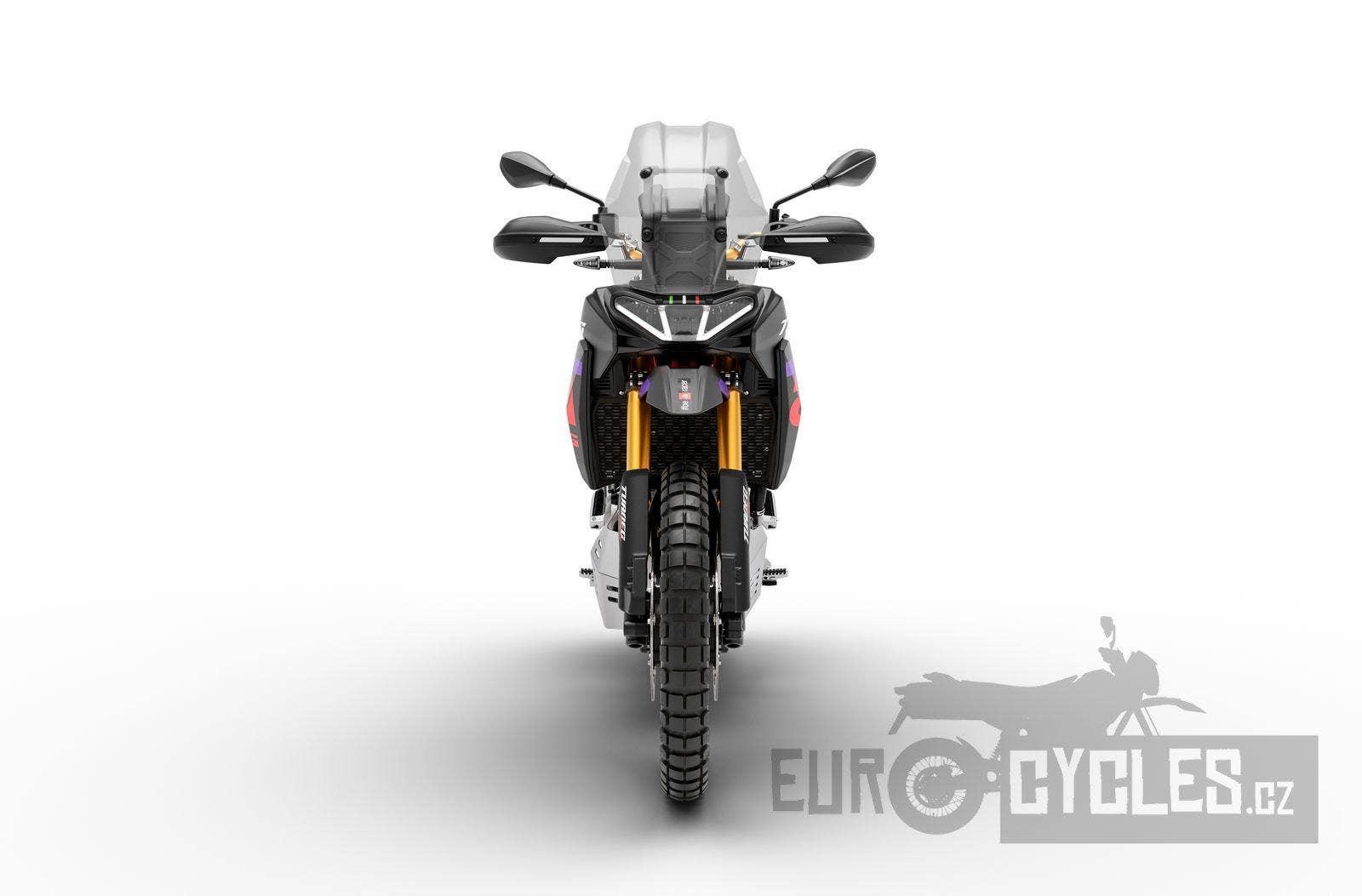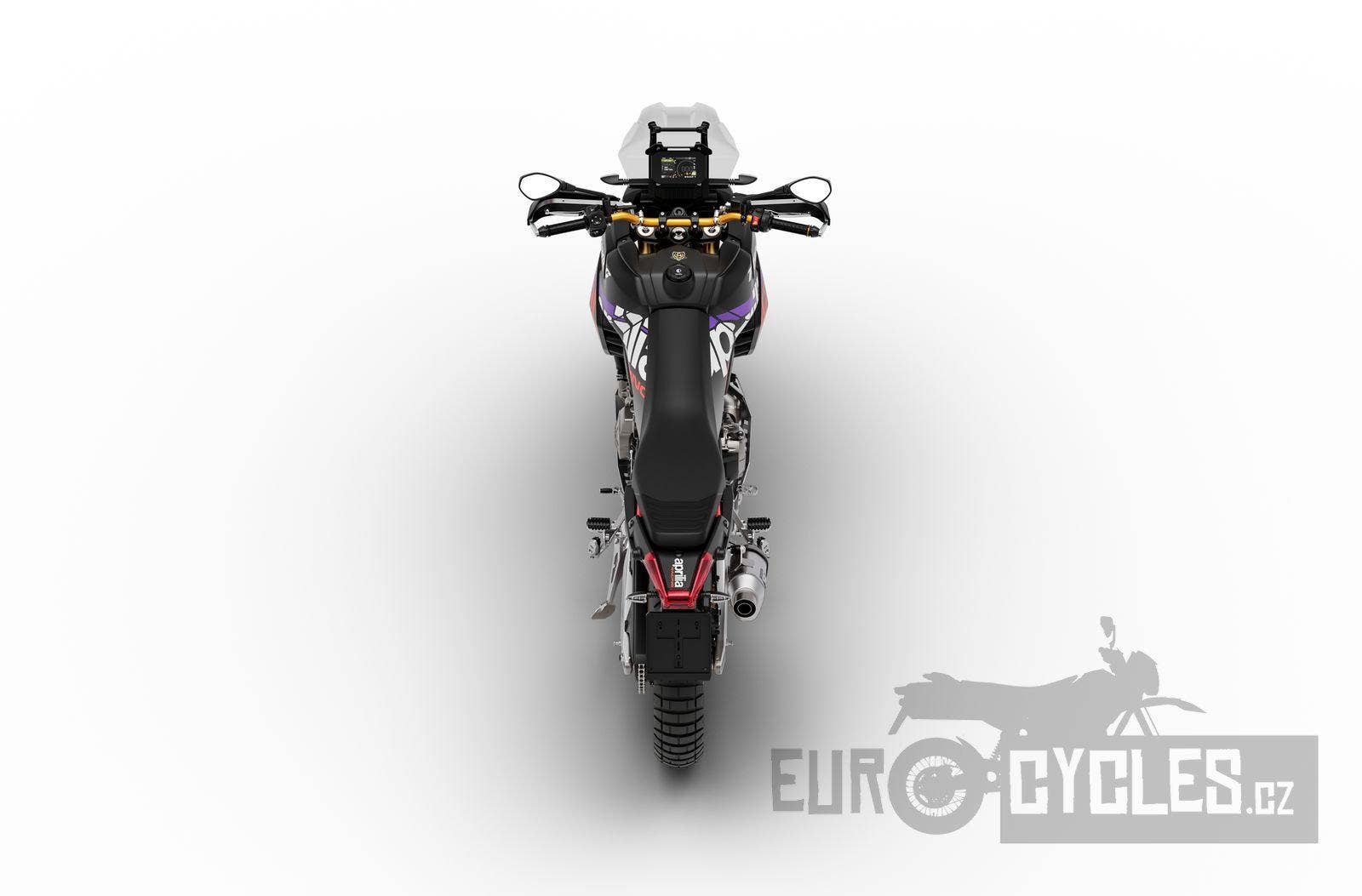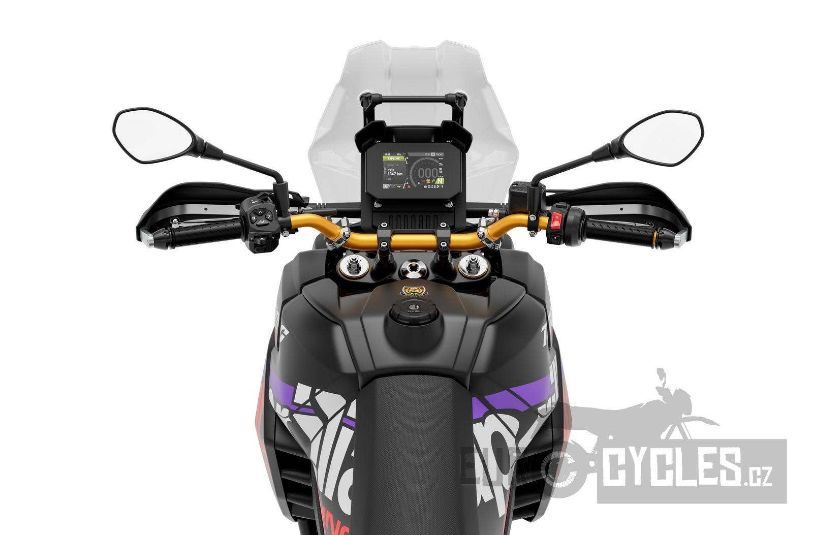 Základní výbava 199 Kg* Full LED světlomety a směrovky s unikátním světelným podpisem. Lepený 5" TFT displej. Mapy motoru (AEM) , brzdný účinek motoru (AEB) , dvoukanálové ABS (3 režimy a ochrana proti nadzvednutí zadního kola), kontrola trakce (ATC) , 4 jízdní režimy, tempomat (ACC) . Vyvýšené rally sedlo, specifická řídítka, off-road chrániče rukou, vysoký blatník, výfuk SC-Project, off-road kryt motoru, vodítko řetězu, rally boční stojan, brzdové hadice s kovovým opletením.