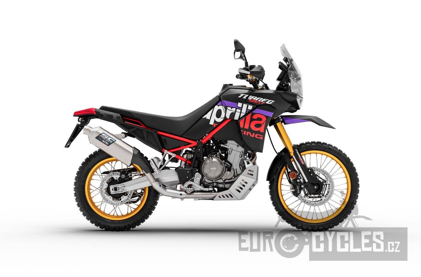 Aprilia Tuareg Rally je vybavena aktualizovanou mapou motoru a nabízí rychlejší a citlivější reakci na plyn. Toto nastavení zajišťuje optimální kontrolu při překonávání překážek a umožňuje přesné řízení i v tom nejnáročnějším terénu. Výfuk SC Project, navržený speciálně pro model Rally, je vyroben z titanu a je vybaven 60mm výfukovou koncovkou v závodním stylu, která zvyšuje výkon a zvuk. Snižuje také celkovou hmotnost motocyklu na pohotovostní hmotnost pouhých 199 kg * .