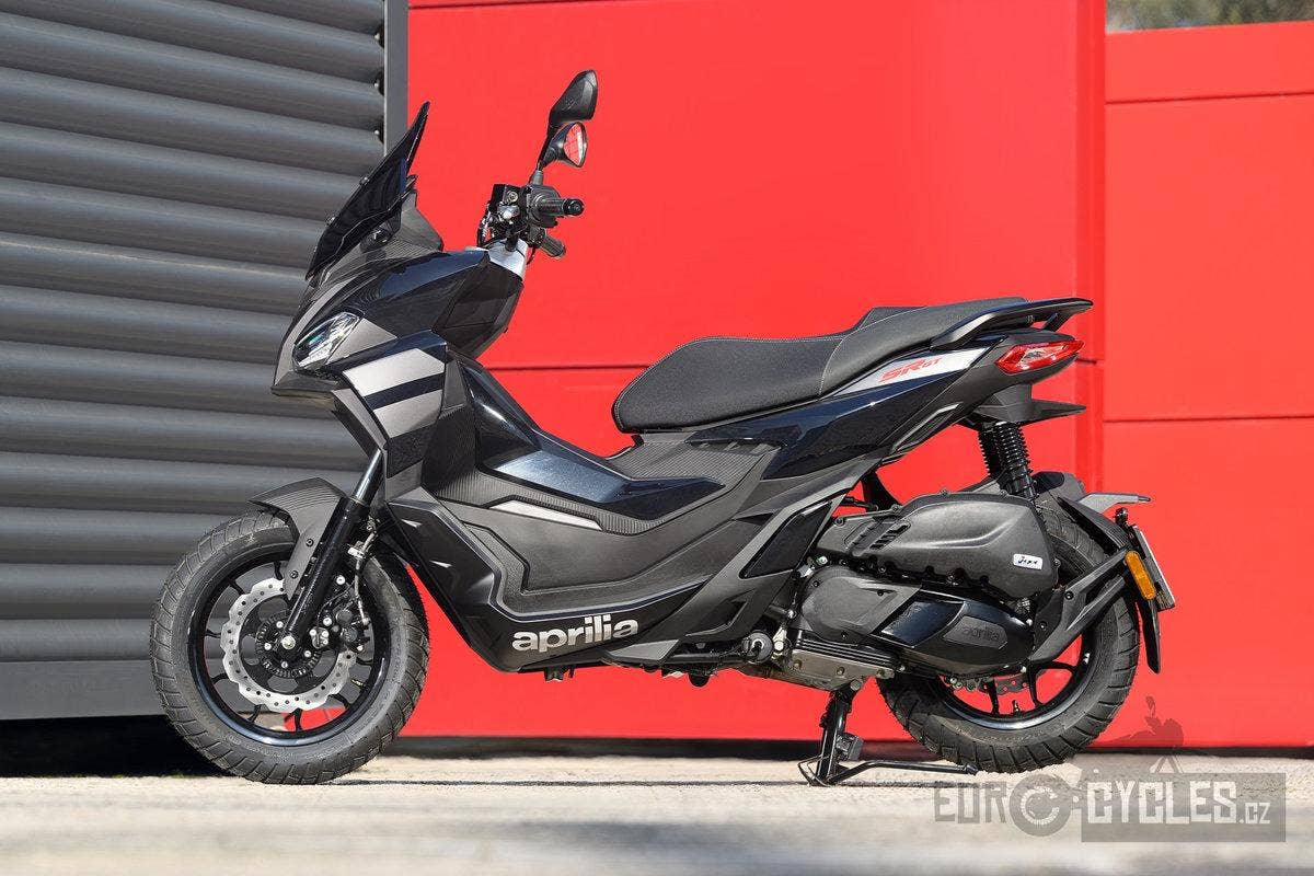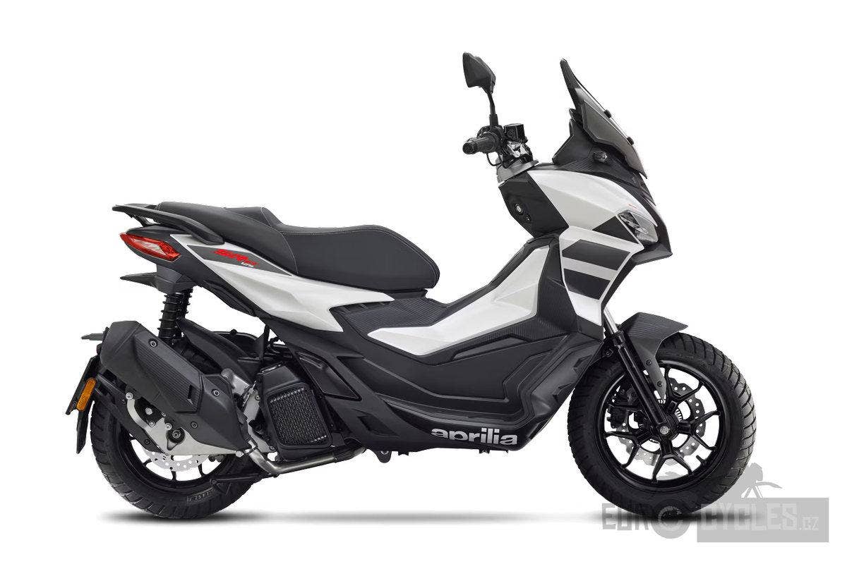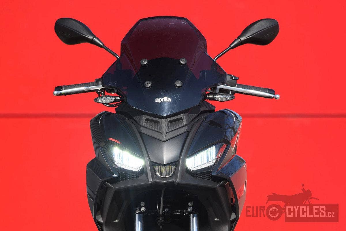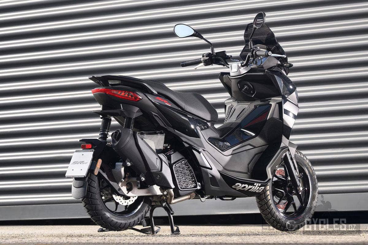 Model SR GT 125 kombinuje sofistikované linie a rafinované tvary a nově definuje rovnováhu mezi elegancí a městským temperamentem. Přední maska se směrem dozadu zvedá a vytváří dynamický profil, zatímco černé detaily, jako jsou přední blatník, kola, stupačky spolujezdce a spoiler s logem Aprilia na každé straně, dokonale doplňují výrazné barvy stroje. Černošedé sedlo spolu s polepy zobrazujícími objem motoru a logem na zadní části dodávají skútru výrazný vzhled, který dokonale kombinuje styl a výkon.