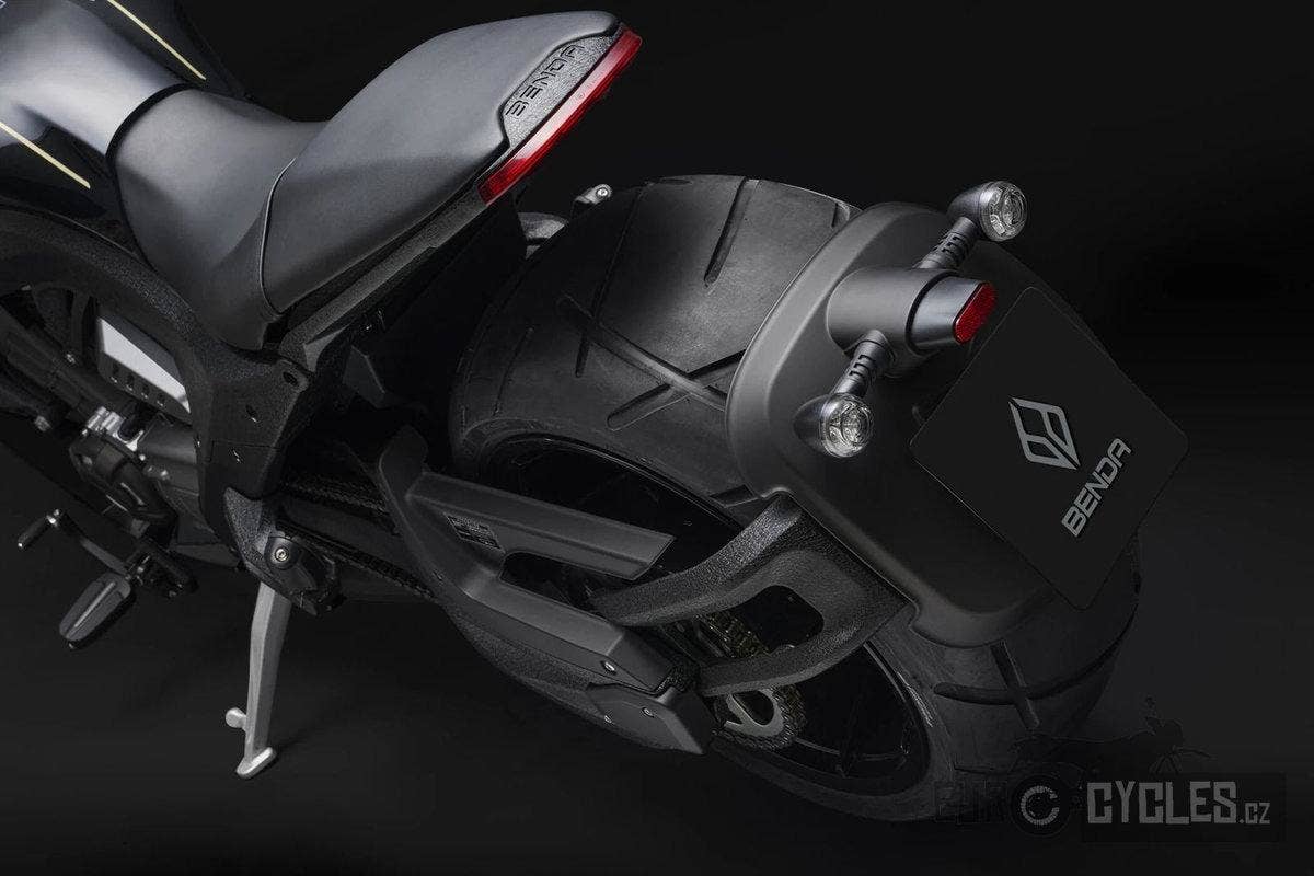 Benda LFC700 se vyznačuje futuristickým, agresivním designem s ostrými liniemi a nadřazeným vzhledem. Kyvná vidlice s extrémně širokou zadní pneumatikou o průměru 310 mm přispívají k jeho sportovnímu vzhledu, zatímco vysoce kvalitní materiály odrážejí pečlivou pozornost věnovanou detailům.