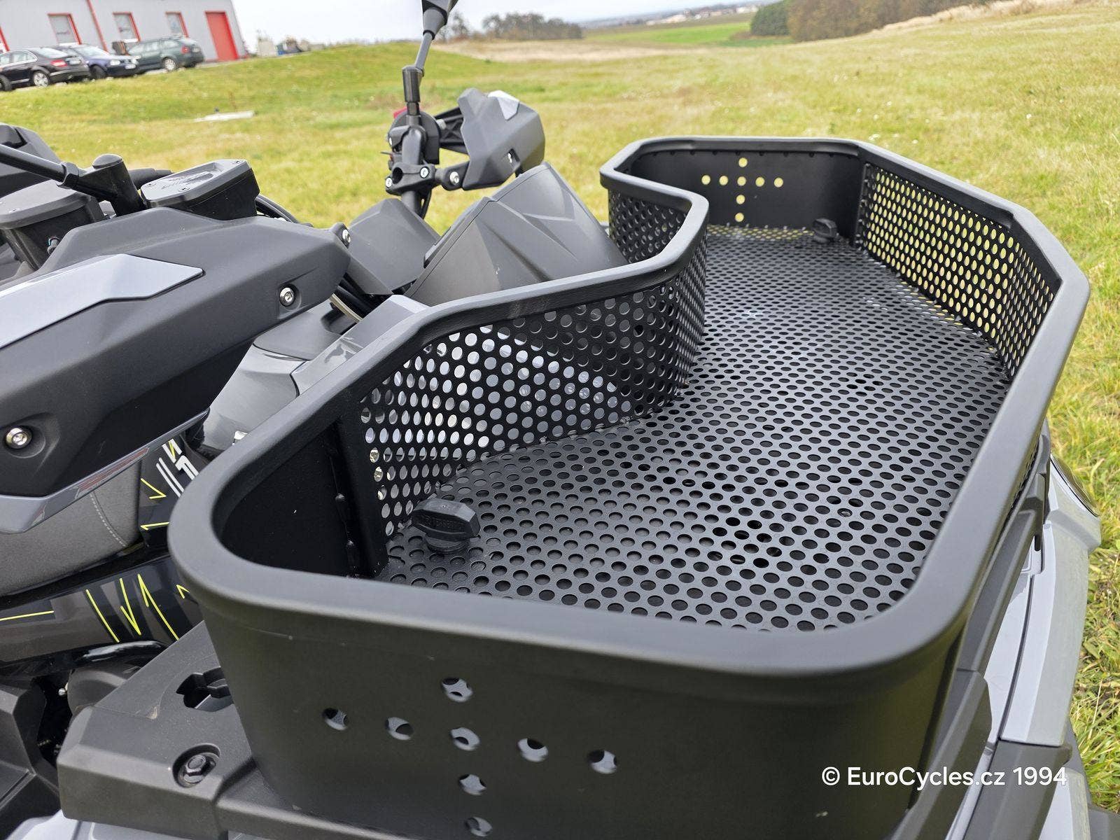 Posilovač řízení EPS, 2x2, 4x4, elektricky řazená uzávěrka předního diferenciálu, zadní diferenciál samosvorný. Naviják, tažné zařízení. Neregistrovaný stroj, najeto 116 km. Žádný terén. Zadní box, přední ocelový koš. Krásná čtyřkolka za dobrou cenu! Záruka. Homologace E, bílá značka, STK 6 let.