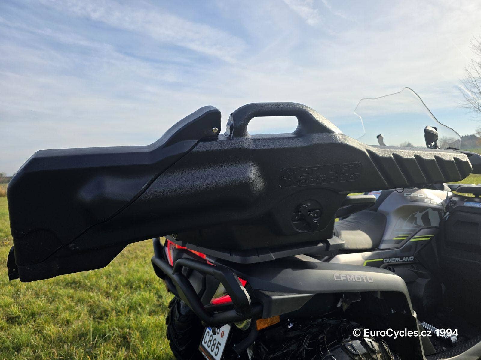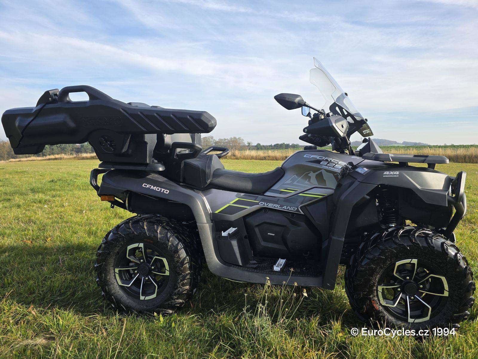 Původ ČR, koupeno v EuroCycles v září 2025, odpočet DPH, záruka. Verze Overland s maximální výbavou: přední a zadní ochranný rám, LED přídavný světlomet, ALU kryt podvozku, kufr, přední štít, posilovač řízení. Doplněno o další nákladné příslušenství: odnímatelné a uzamykatelné pouzdro na pušku, výhřevy sedadel, rukojetí a páčky plynu. Najeto 417 km, v podstatě nový stroj s příslušenstvím v pořizovací hodnotě 242000, Kč.