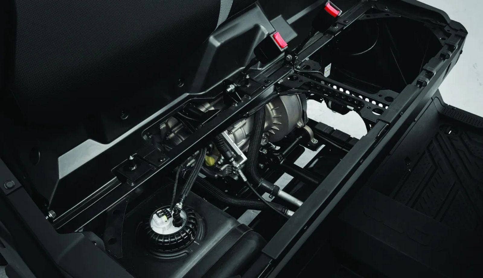 Posilovač řízení EPS, naviják a tažné zařízení 800 kg v ceně, záruka 5 let. Pracovní náklaďáček s jednoválcem zvládne hodně práce za rozumné peníze a hlavně s rozumnými provozními náklady. S příchodem nového motoru, který je už v prodeji na čtyřkolce, je tu i zcela nové UTV. S motorem, který je mimochodem osazený variátorem CVTech z Kanady, je spojená novinka v podobě možnosti volby jízdních režimů mezi módy Eco a Sport. Samozřejmě nečekejte rozdíl desítek koní, ale přeci jen rozdíl v projevu tu je. Sport disponuje vyšším točivým momentem a ostřejším průběhem výkonu. Eco se naopak hodí na popojíždění okolo farmy, nebo po městě při čištění chodníků.