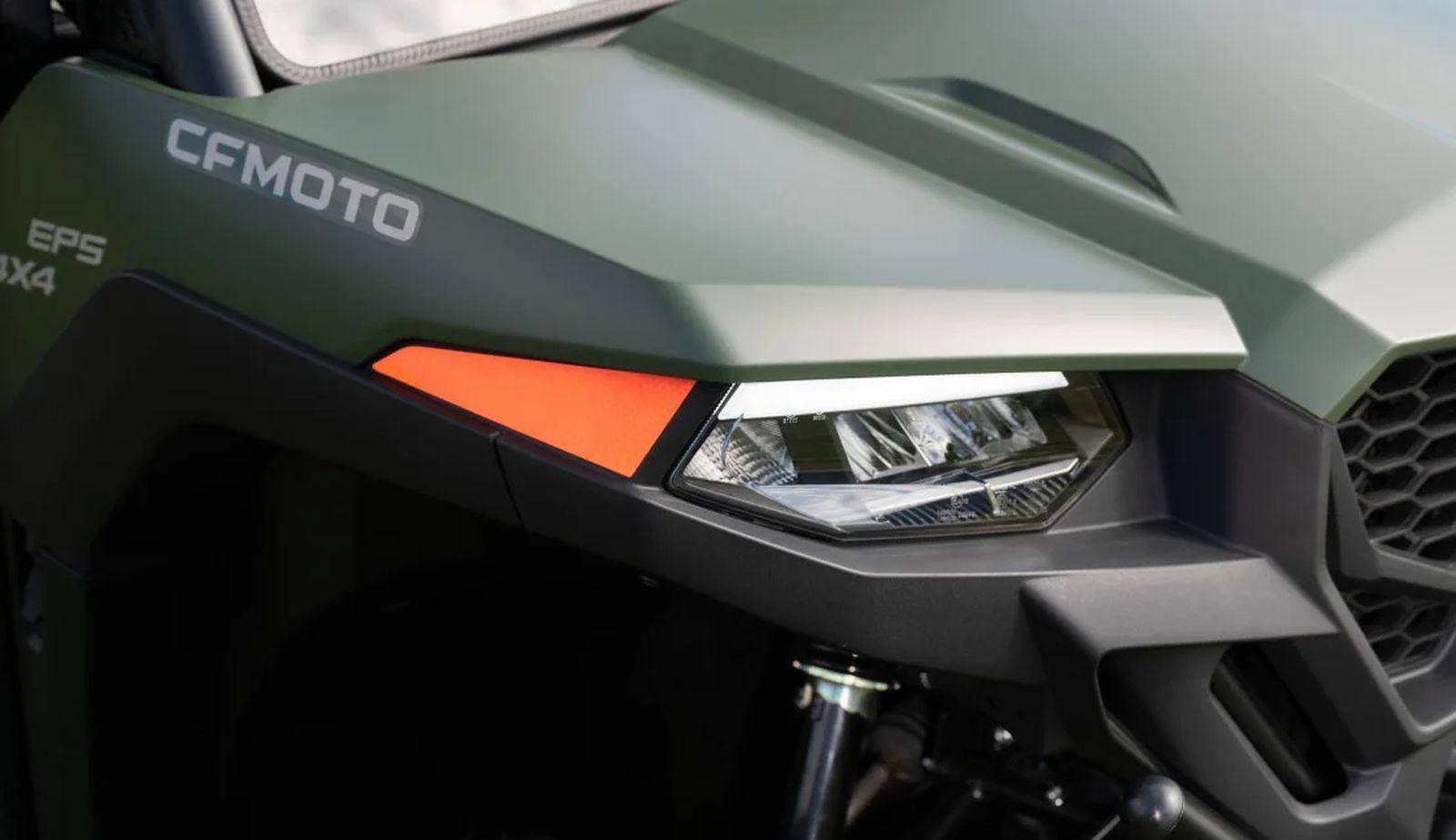 Kromě přepínače jízdních režimů je v kabině ještě nová palubní deska s inovovaným displejem, který přehledně zobrazuje všechny informace, co potřebujete. Na první pohled je naopak vidět nový design, který vychází ze současných trendů CFMOTO. Jsou tu nové LED světlomety vpředu i vzadu a ostřejší maska. Co naopak chybí, jsou pevné dveře. Ty nahrazují sítě, ale v rámci kategorie to není nic neobvyklého. Nově řešená je i střecha UTV, která má systém "okapů", které odvádí při dešti vodu správným směrem, a na jezdce, ani do kabiny neprší. Je tu pochopitelně i možnost osadit UTV kompletní střechou. I nová generace UTV je homologována pro dva jezdce, čemuž odpovídá i komfort kabiny. Díky absenci třetí sedačky je tu dost místa i pohodlí a nechybí ani odkládací schránky. Sedačka řidiče je navíc nově nastavitelná.