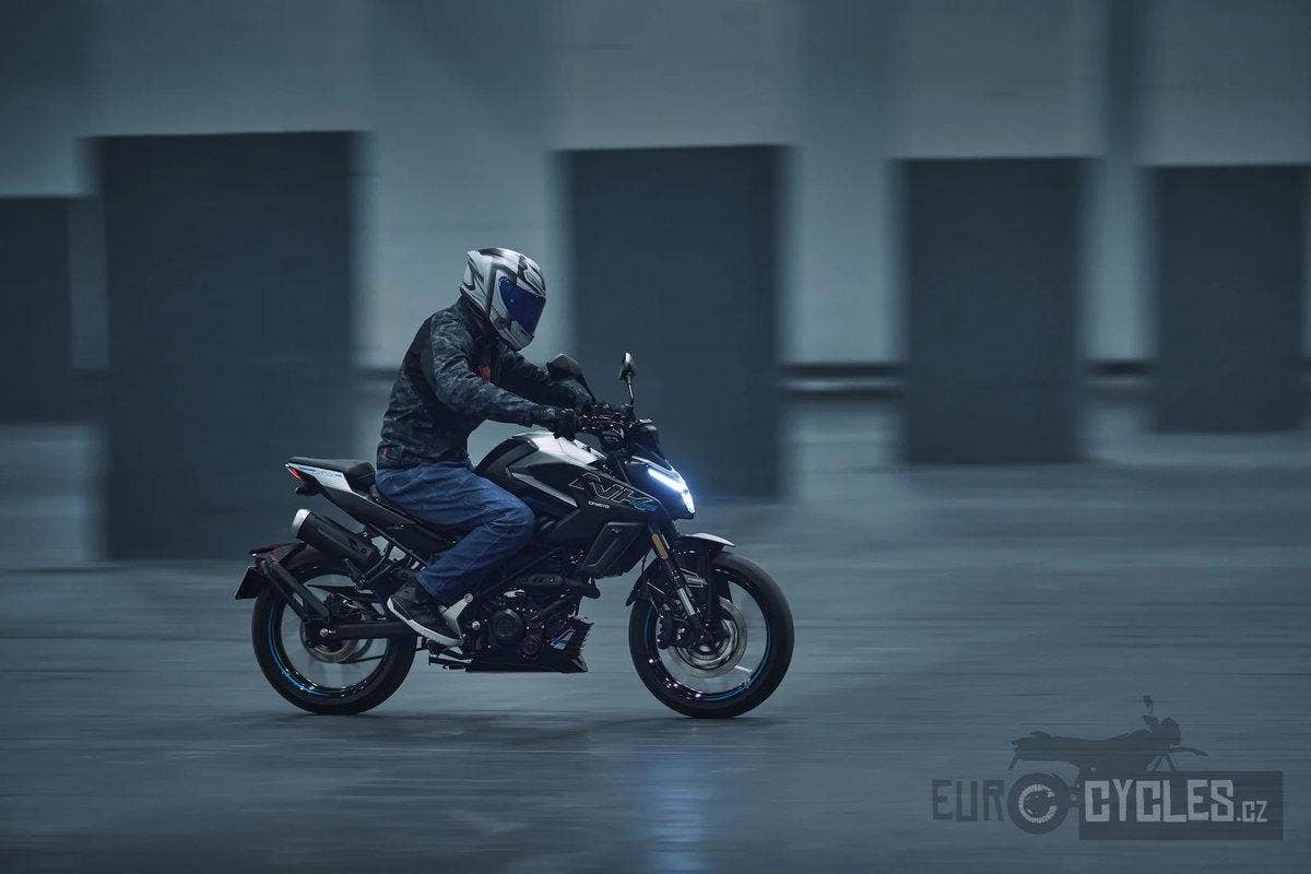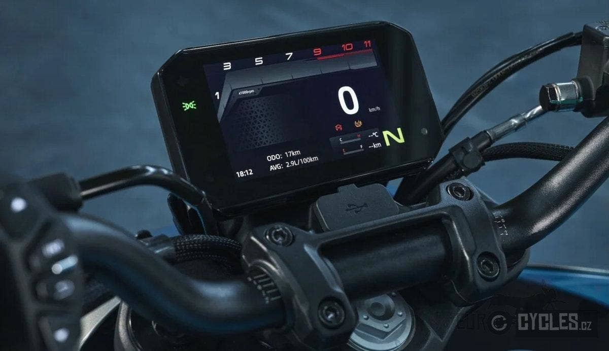 V oblasti elektroniky je CFMOTO 125NK moderně vybavená. Celé osvětlení, tedy světlomet, zadní světlo a blinkry jsou v LED. Displej je 5palcový TFT a zobrazuje všechny důležité informace přehledně a jeho ovládání je jednoduché. Volitelně je k dispozici T-Box, který nabízí další funkce konektivity. Motorka je nabízena v barvách Zephyr Blue a Gem Black.