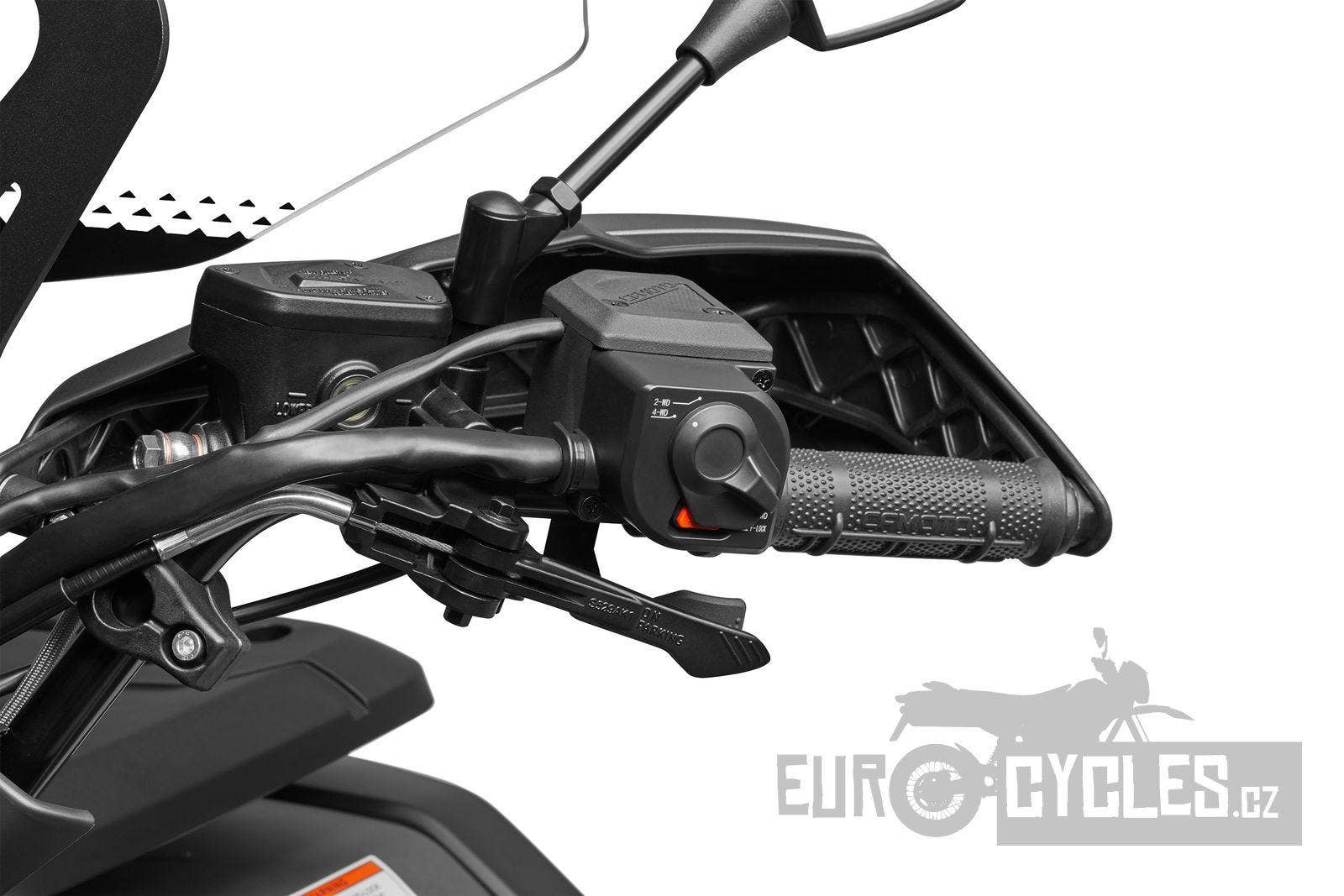 Jezdec má k dispozici uzávěrku předního diferenciálu, ale i plné uzávěrky kol 4×4.
