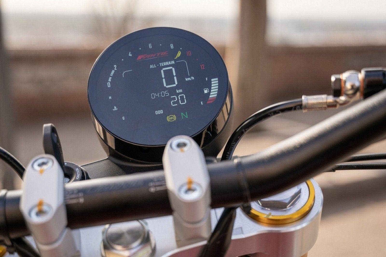 Přední 41mm USD vidlice FANTIC FRS má zdvih 150 mm, zadní odpružení se stejným zdvihem je také tovární FANTIC FSR. U verze Scrambler je nastavitelný odskok u zadního tlumiče.