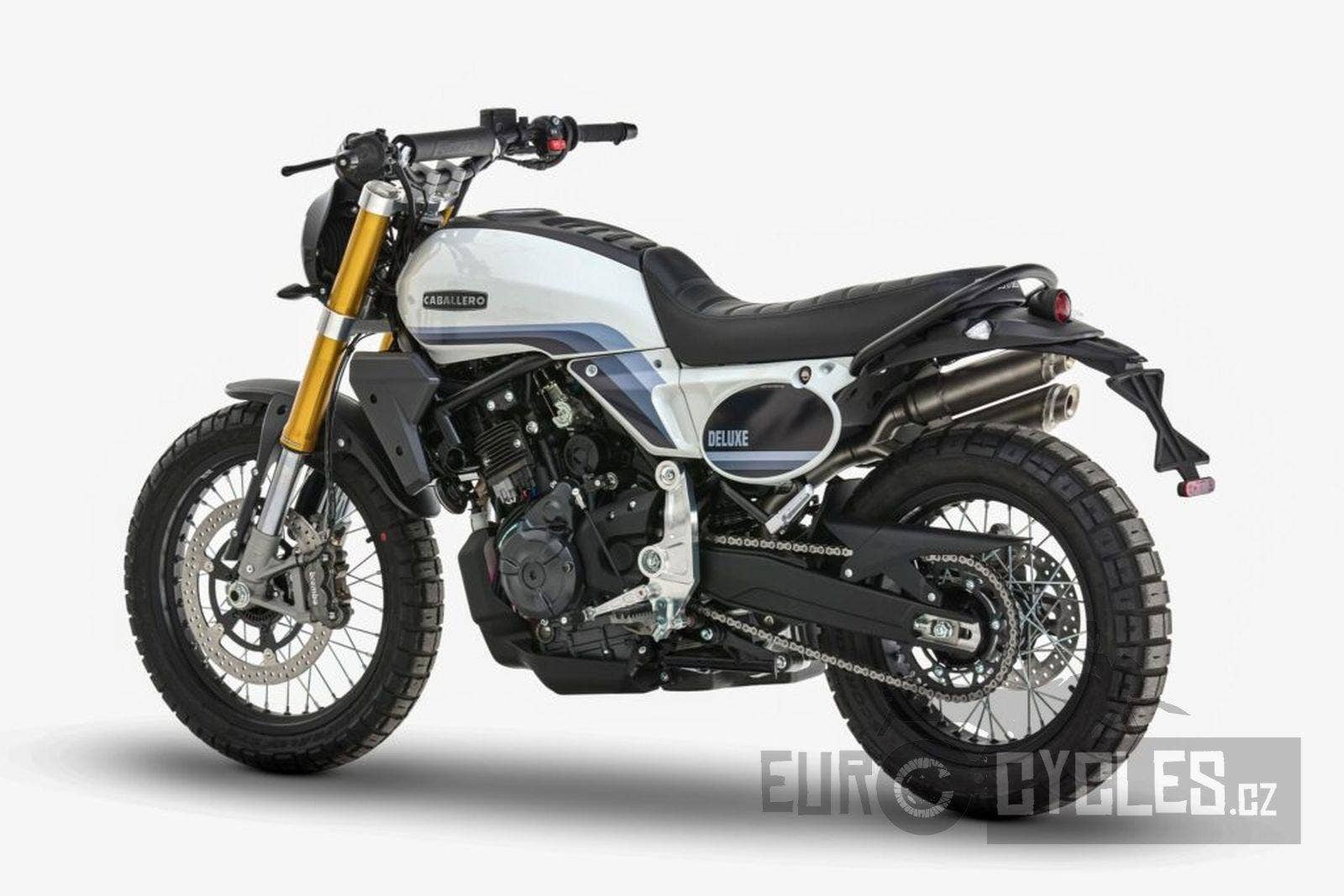 Caballero 700 spojuje výkon paralelního dvouválce Yamaha CP2, špičkovou elektroniku s náklonovým ABS – s možností deativace přímo z řídítek – a nastavitelnou kontrolou trakce, prémiový podvozek Marzocchi a brzdný systém Brembo. Díky nízké hmotnosti 175 kg, 19″ a 17″, drátovým kolům a optimalizovanému odpružení zvládá s lehkostí silnice i terén, přesně tak, jak se na autentický scrambler patří.