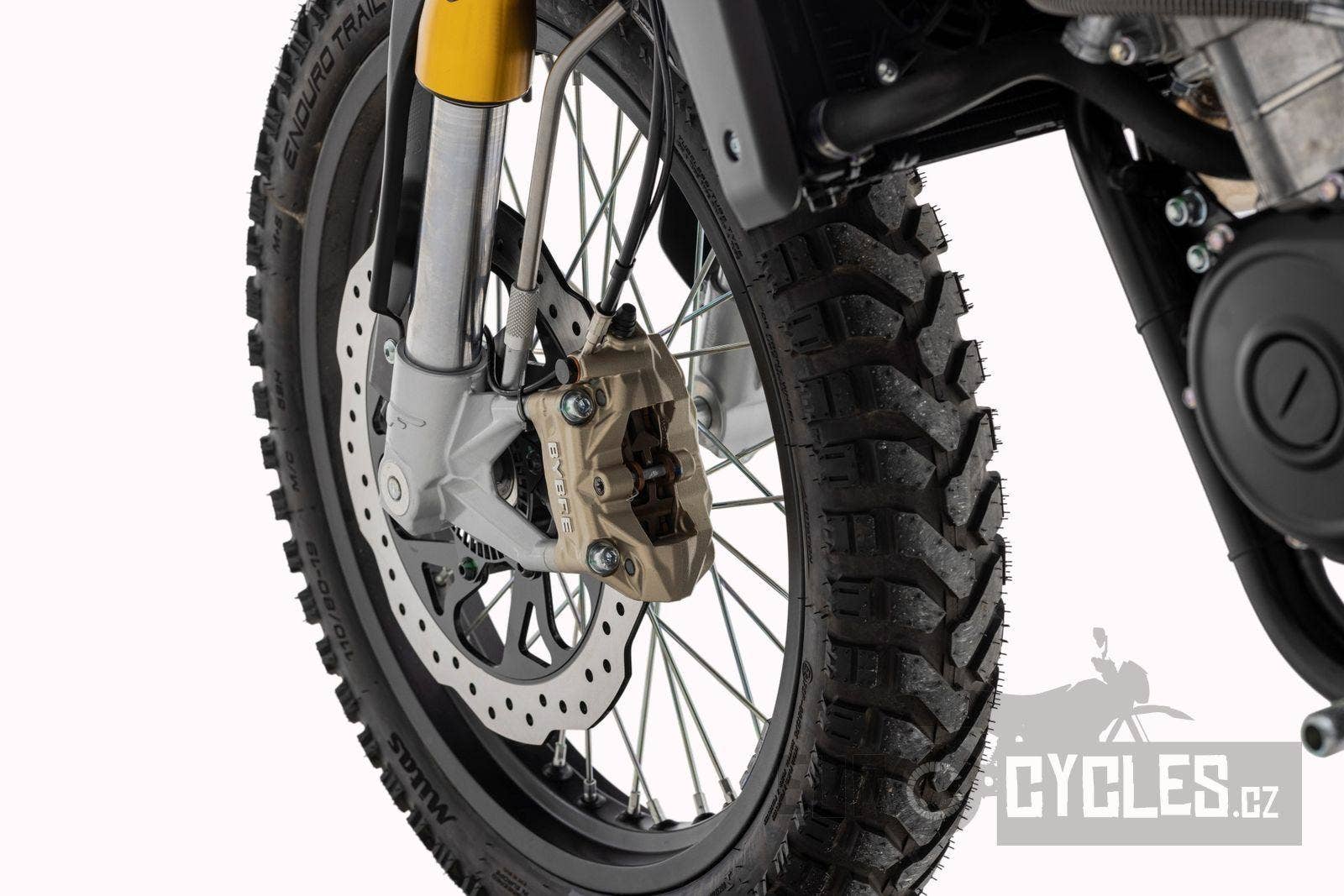 Drátová kola s pneumatikami Pirelli Scorpion Rally (110/80-19 vpředu a 140/80-17 vzadu) dodávají motocyklu autentický scrambler vzhled. 320 mm přední plovoucí a 230 mm zadní brzdový kotouč a nastavitelné náklonové ABS s kontrolou trakce zaručují skvělou bezpečnost v každé situaci.