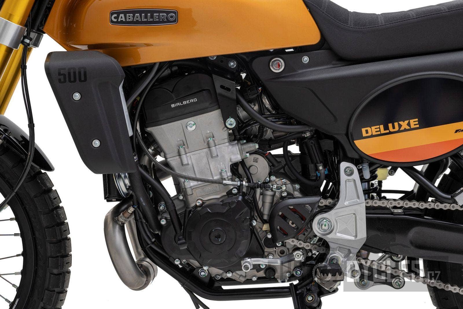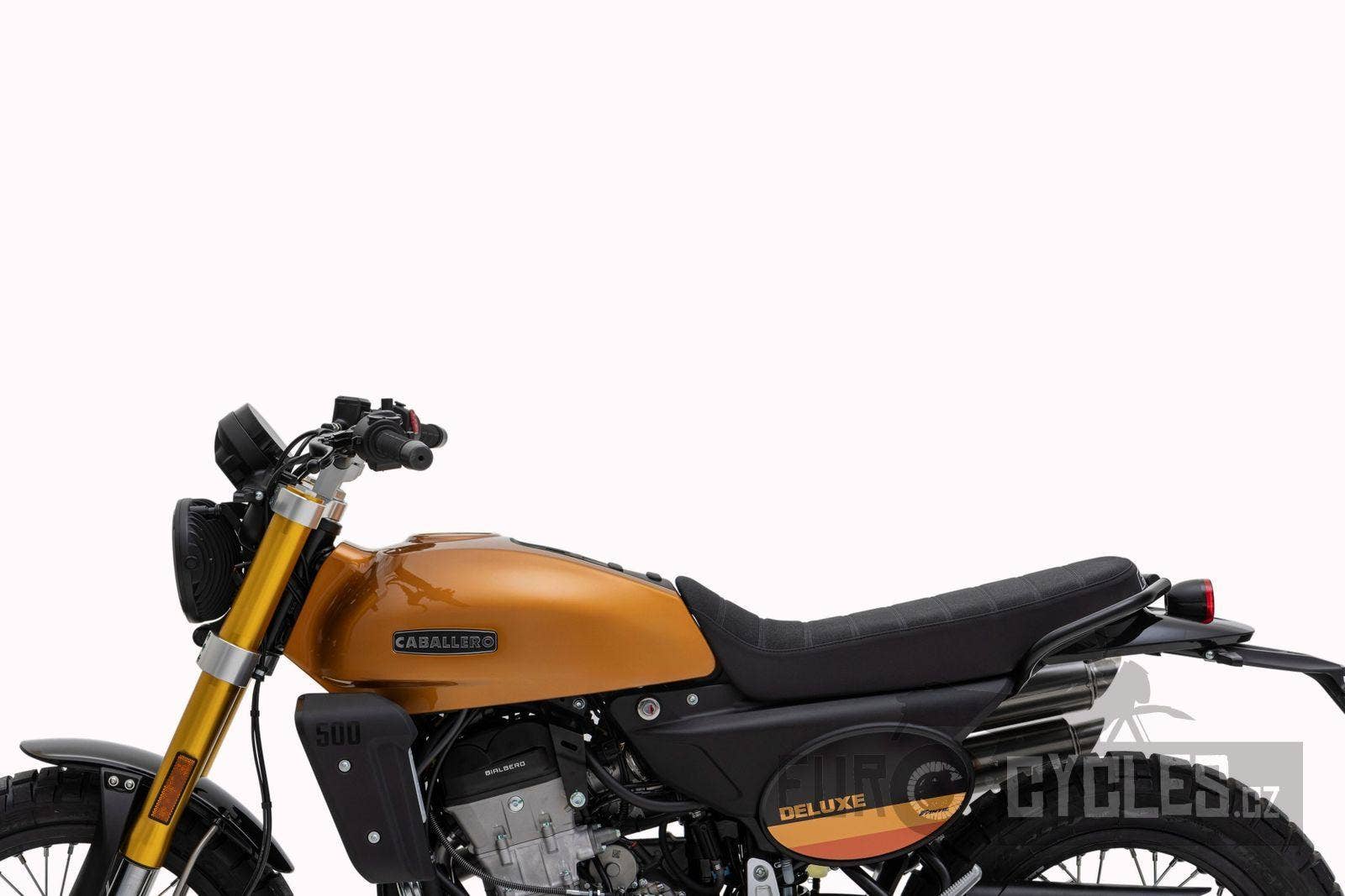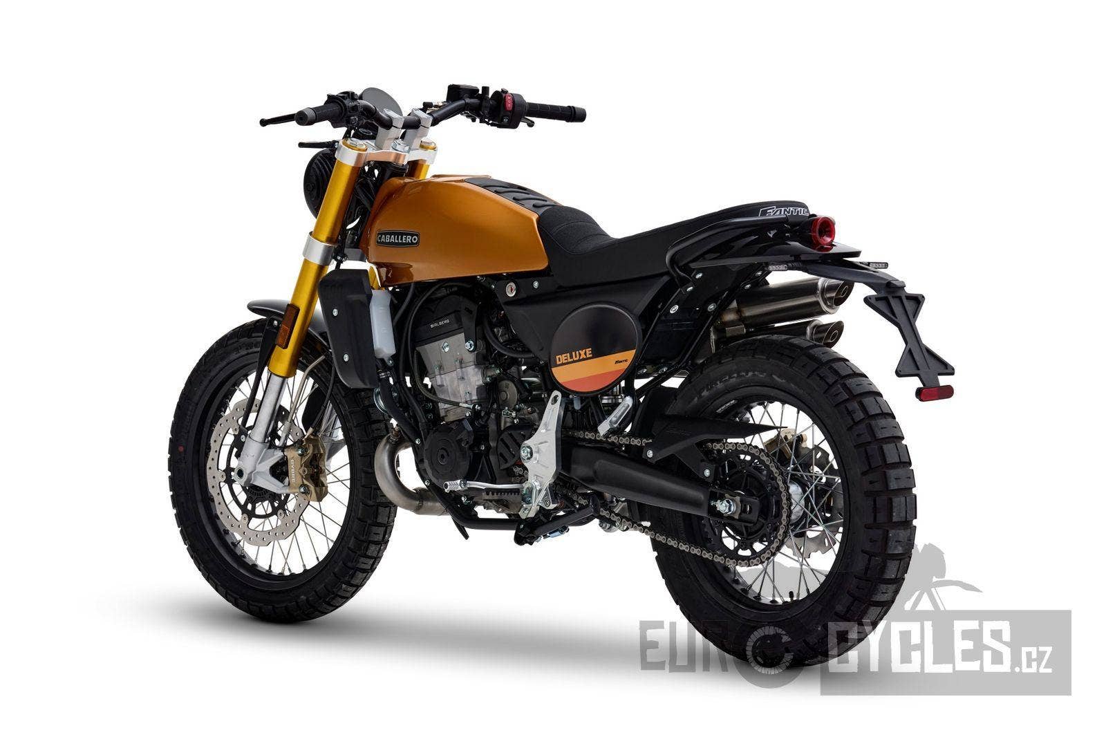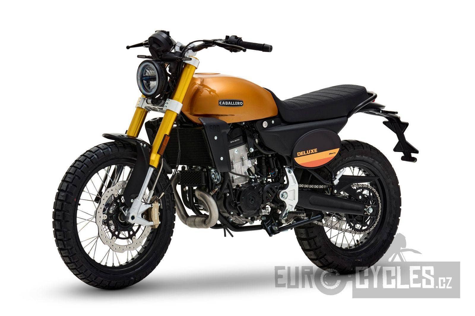 Caballero 500 Deluxe je ideální pro ty, kteří si rádi užívají lehký off-roadový zážitek na elegantním, přesto rebelském stroji, který nabízí perfektní zvládání hustého městském provozu a nebojí se vyjet i mimo zpevněné cesty. Verze Deluxe je vyrobená podle stejných technických specifikací jako provedení Scrambler, ale s důrazem na eleganci a italský styl. Skutečný mix městského a terénního bajku!