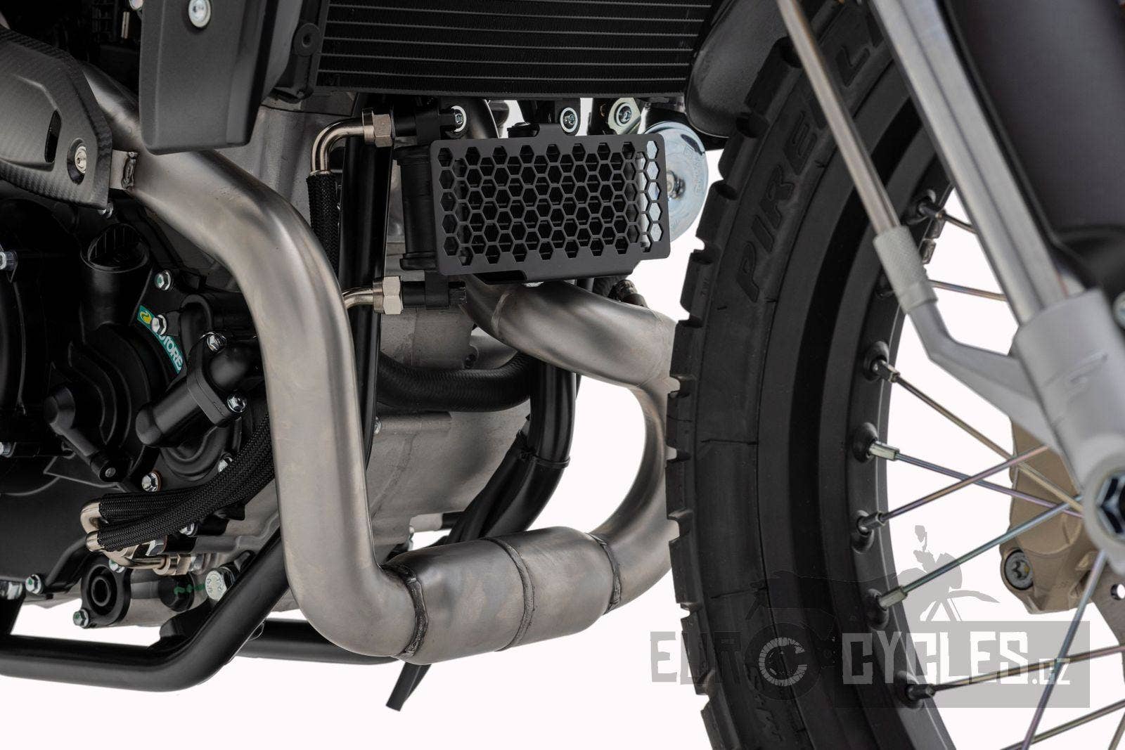 Pozornosti inženýrů neuniklo ani chlazení. Přepracované a zesílené vodní chlazení má větší nádobku na chladící kapalinu a pod ní nově najdeme i vysoce výkonný olejový chladič pro lepší teplotní management motoru. Výfukový systém Arrow, dodává motoru nejen agresivní off-roadový zvuk, ale také vynikající výkonové parametry.