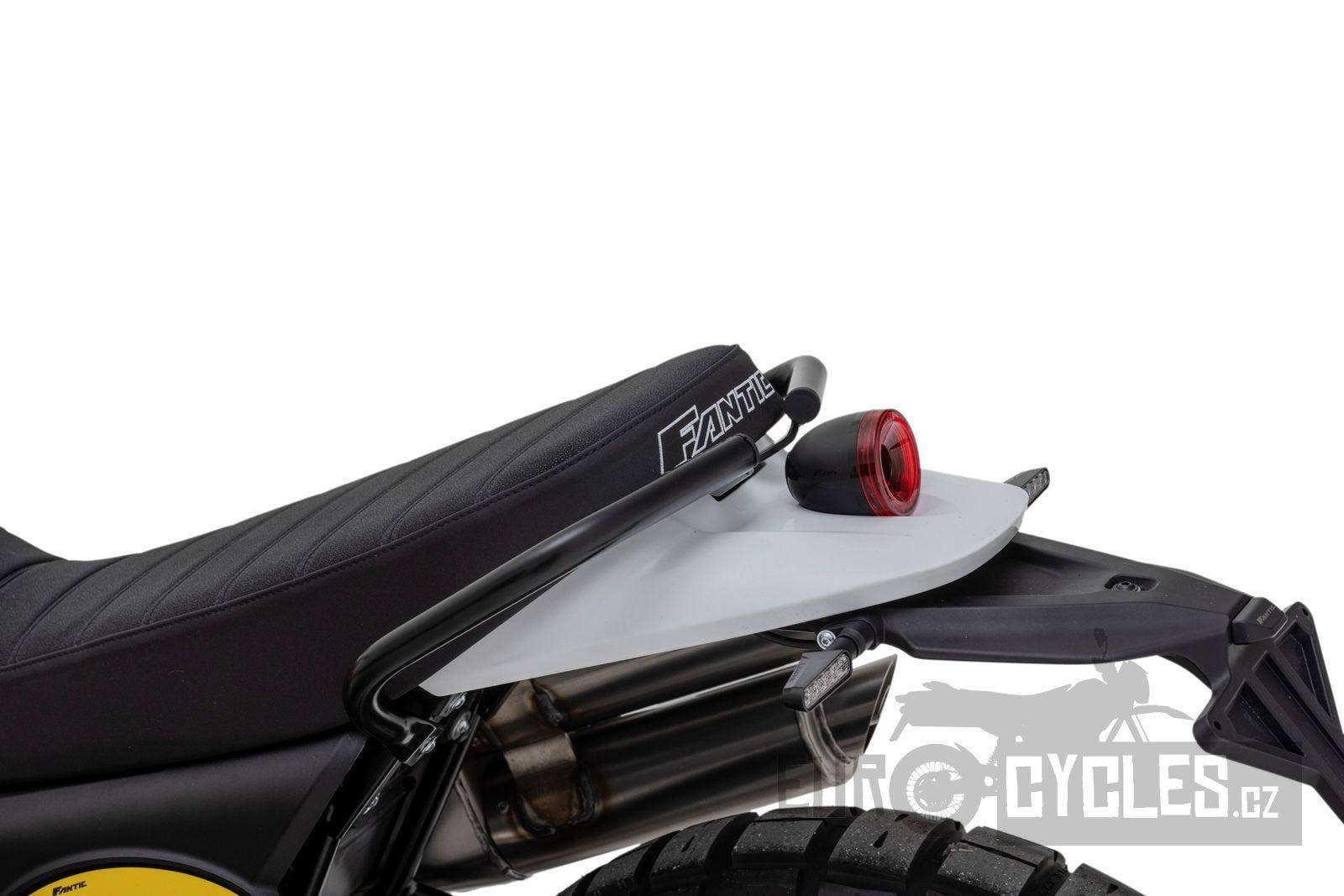Přední 41mm USD vidlice FANTIC FRS má zdvih 150 mm, zadní odpružení se stejným zdvihem je také tovární FANTIC FSR. U verze Scrambler je nastavitelný odskok u zadního tlumiče.