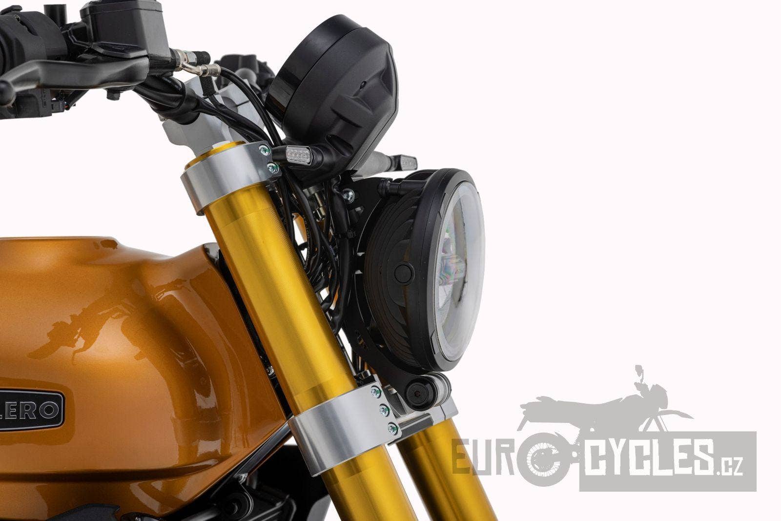 Kompletní LED osvětlení kombinuje moderní design a praktičnost. Přední světlo s kruhovým tvarem je optimalizované pro odolnost proti vibracím a nárazům, přičemž jeho styl ladí se zadním světlem.