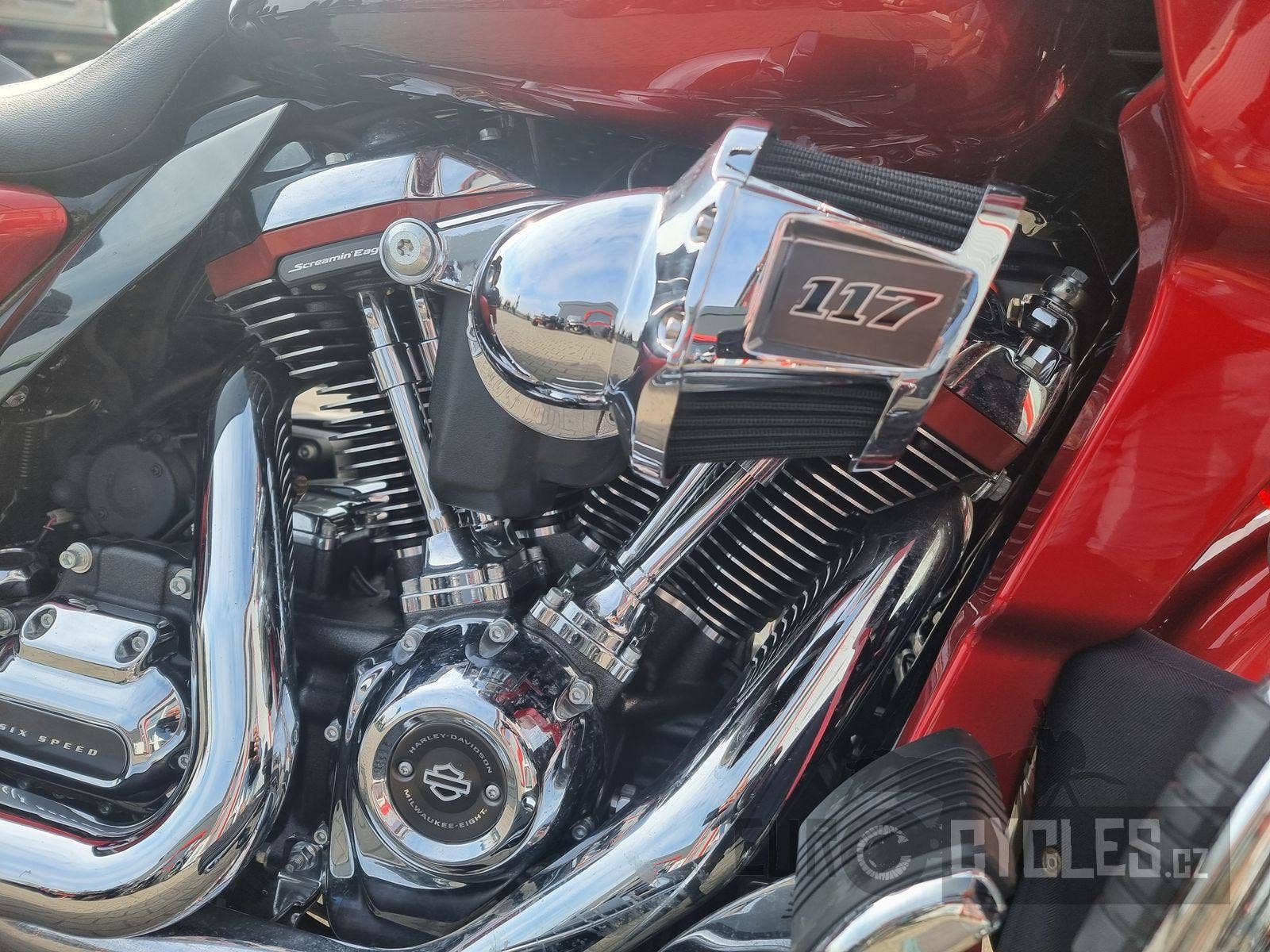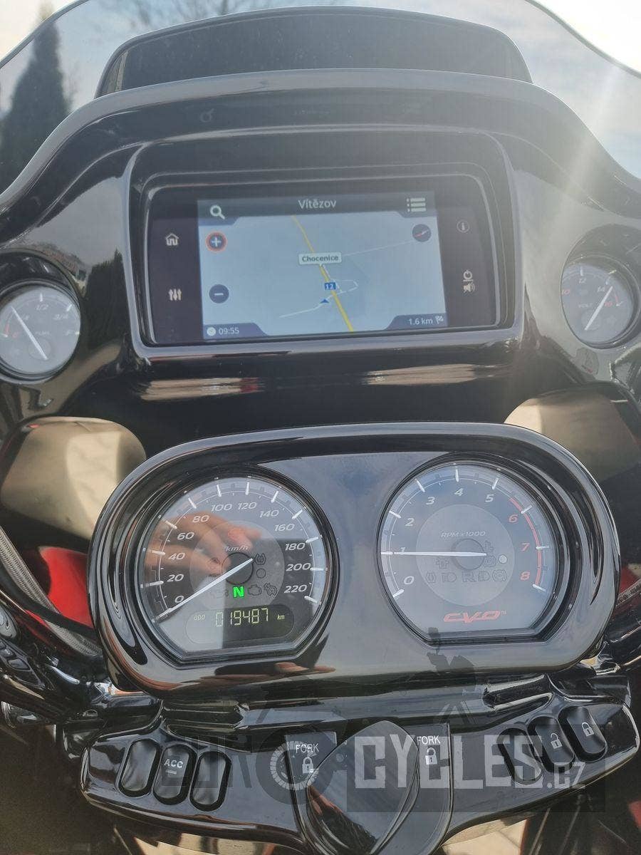 Špičkový motocykl. Motor Screamin´Eage 117, výfuky Dr. Jekill & Mr. Hyde s elektronicky stavitelným zvukovým projevem. Keyless se dvěma ovladači, ABS, kontrola trakce, navi, audio, 6-ti rychlostní převodová skříň, padací rám, kufry a mnoho dalších nákladných doplňků.