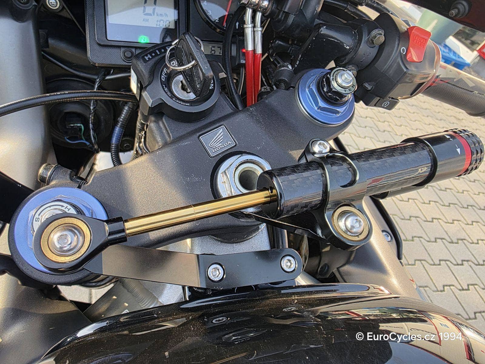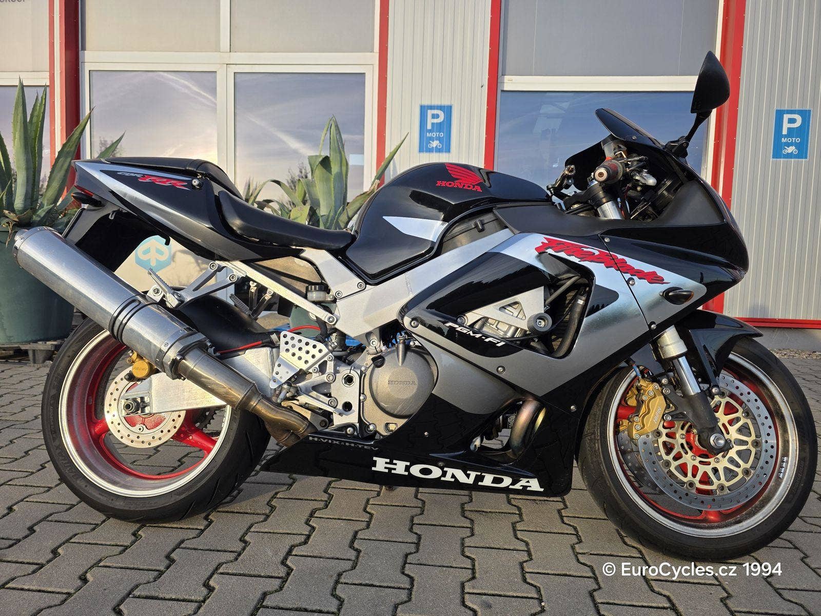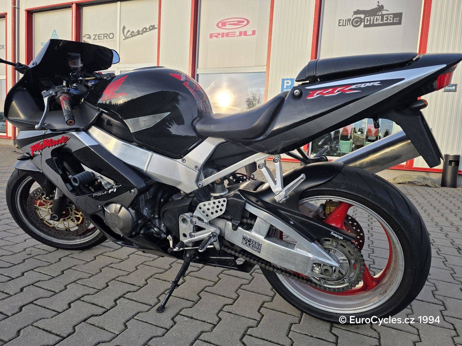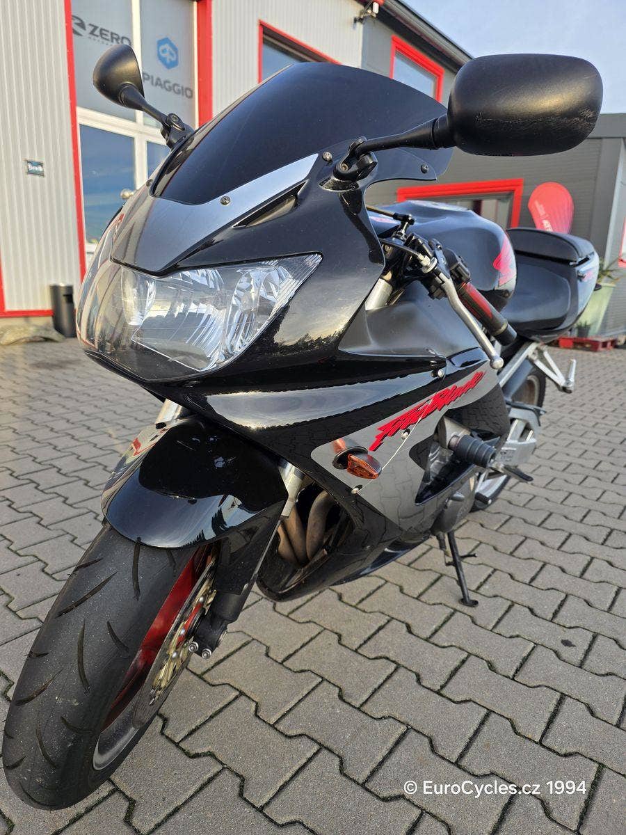 Krásný Fireblade v originálním stavu. Původ ČR. Ukazatel zařazené rychlosti Gipro, tlumič řízení, laděný i originální výfuk, pancéřové brzdové hadice. Přetěsnění přední vidlice, zánovní řetězová sada, nové svíčky. Nové pneumatiky 100%.