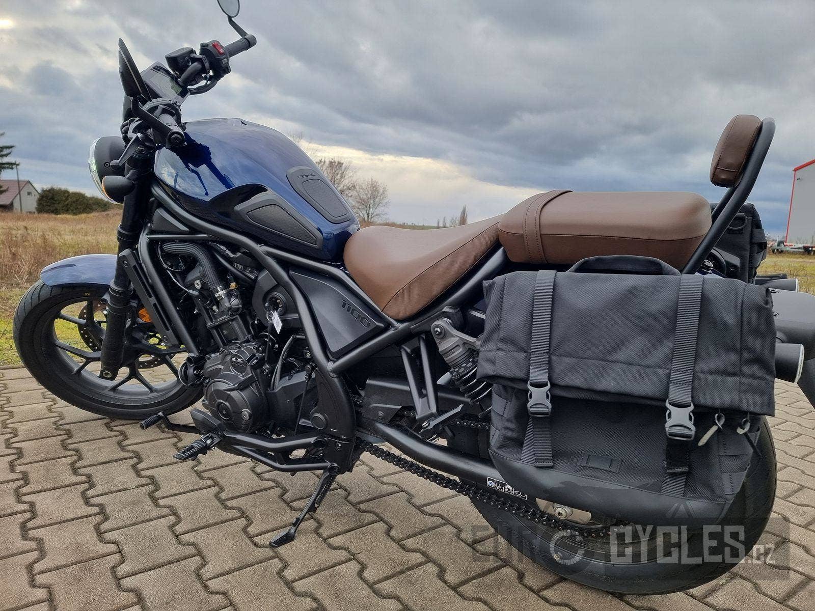 Stav nového motocyklu, první registrace 5.2025, první majitel, najeto pouhých 1638 kilometrů. Doplněno o brašny.
