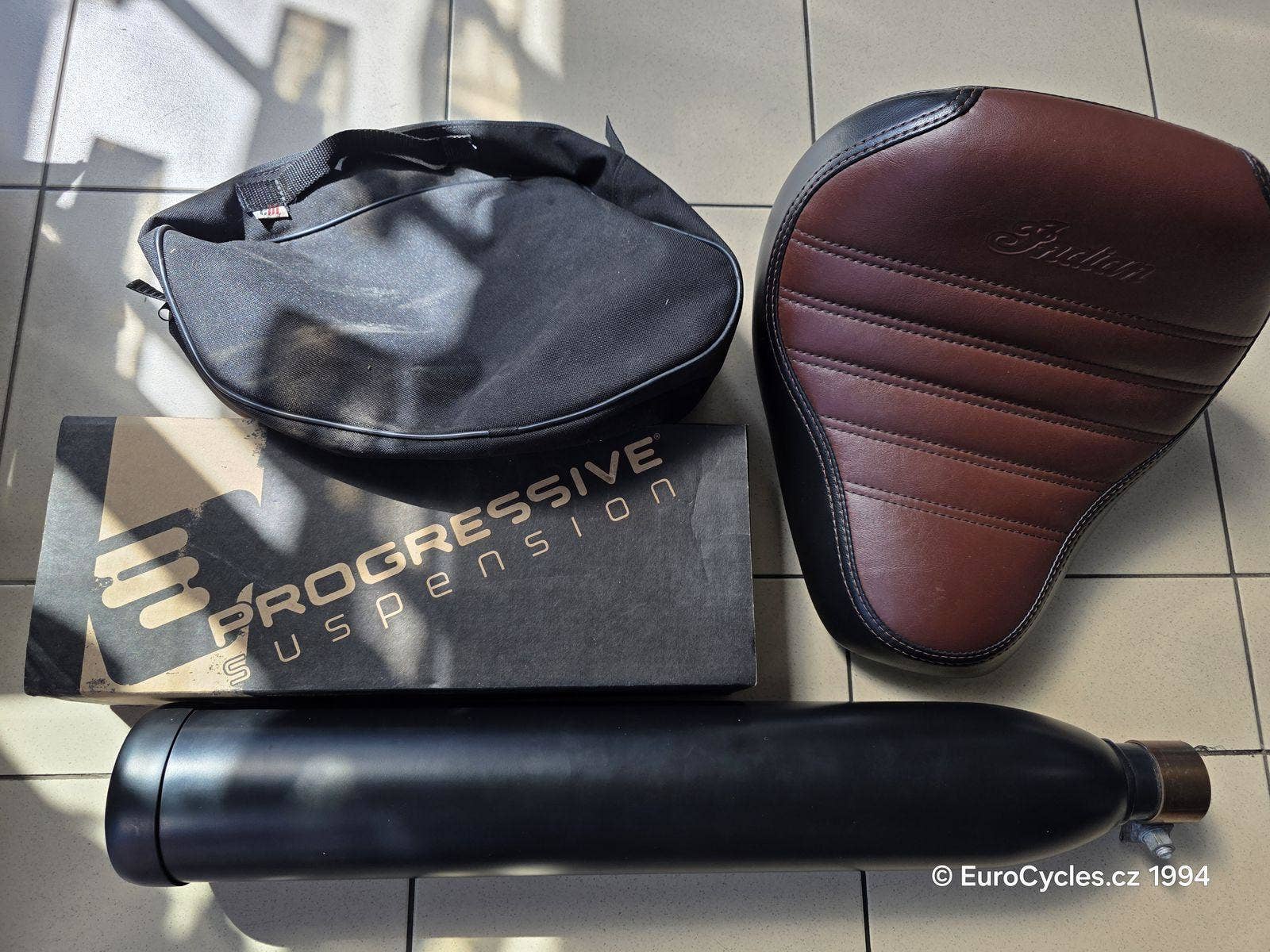 Nádherný Scout Bobber, původ ČR, kompletní dokumentace s manuály a záručními certifikáty. Sedlo Saddlemen, laděné výfuky, původní sedlo i koncovky výfuku k motocyklu. Originální kožené brašny s textilními brašnami. Zadní tlumiče Progressive Suspension. Pneumatiky 85%. Špičkový stav, jasný původ a historie stroje, výborná cena.
