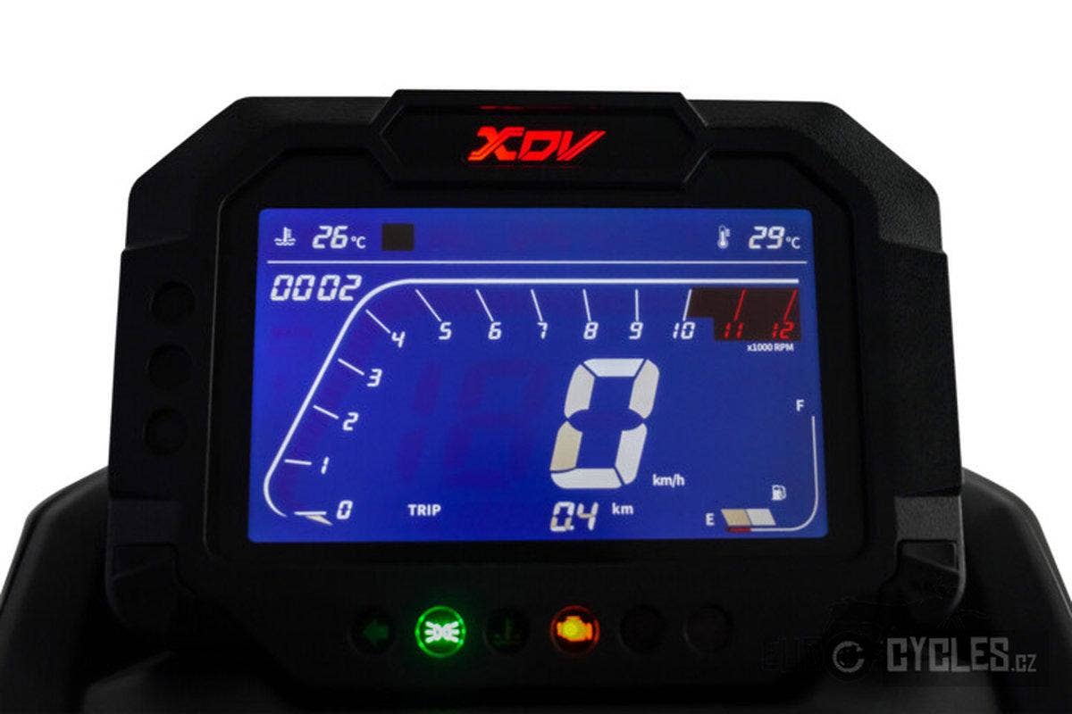 Velký 5″ digitální přístrojový panel TFT poskytuje přehled o všech vašich jízdních parametrech, které jsou dobře viditelné ve dne i v noci.