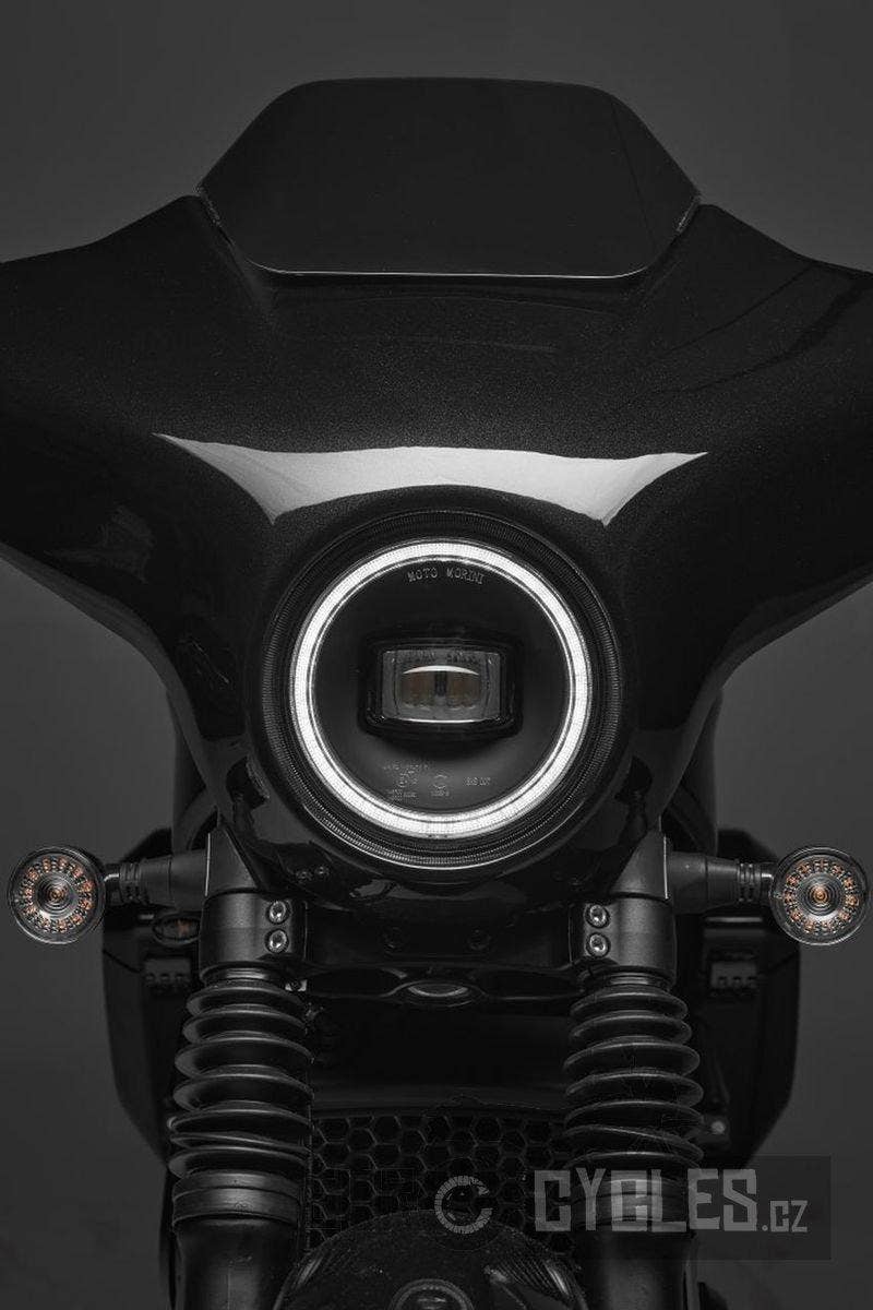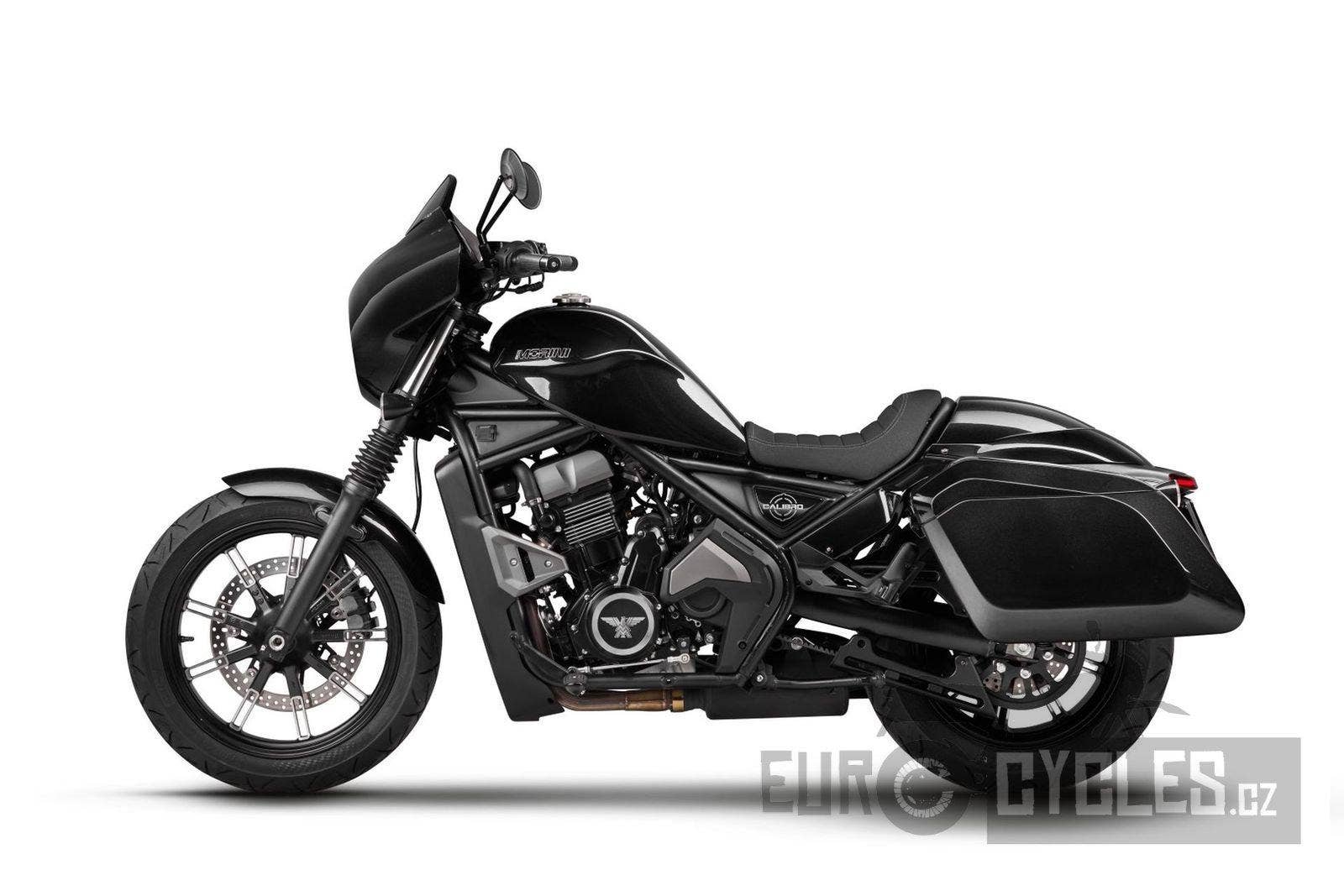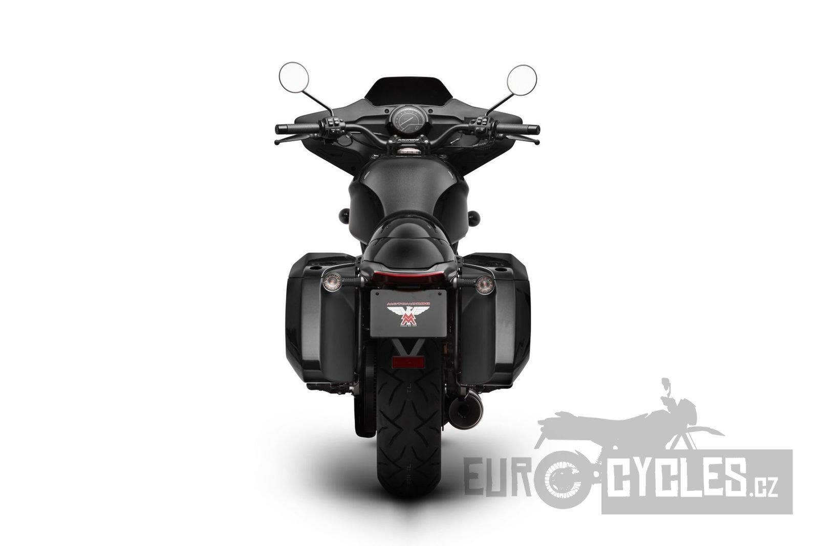 Stylový cruiser Moto Morini s řadovým dvouválcem 693 ccm a kufry v ceně motocyklu.