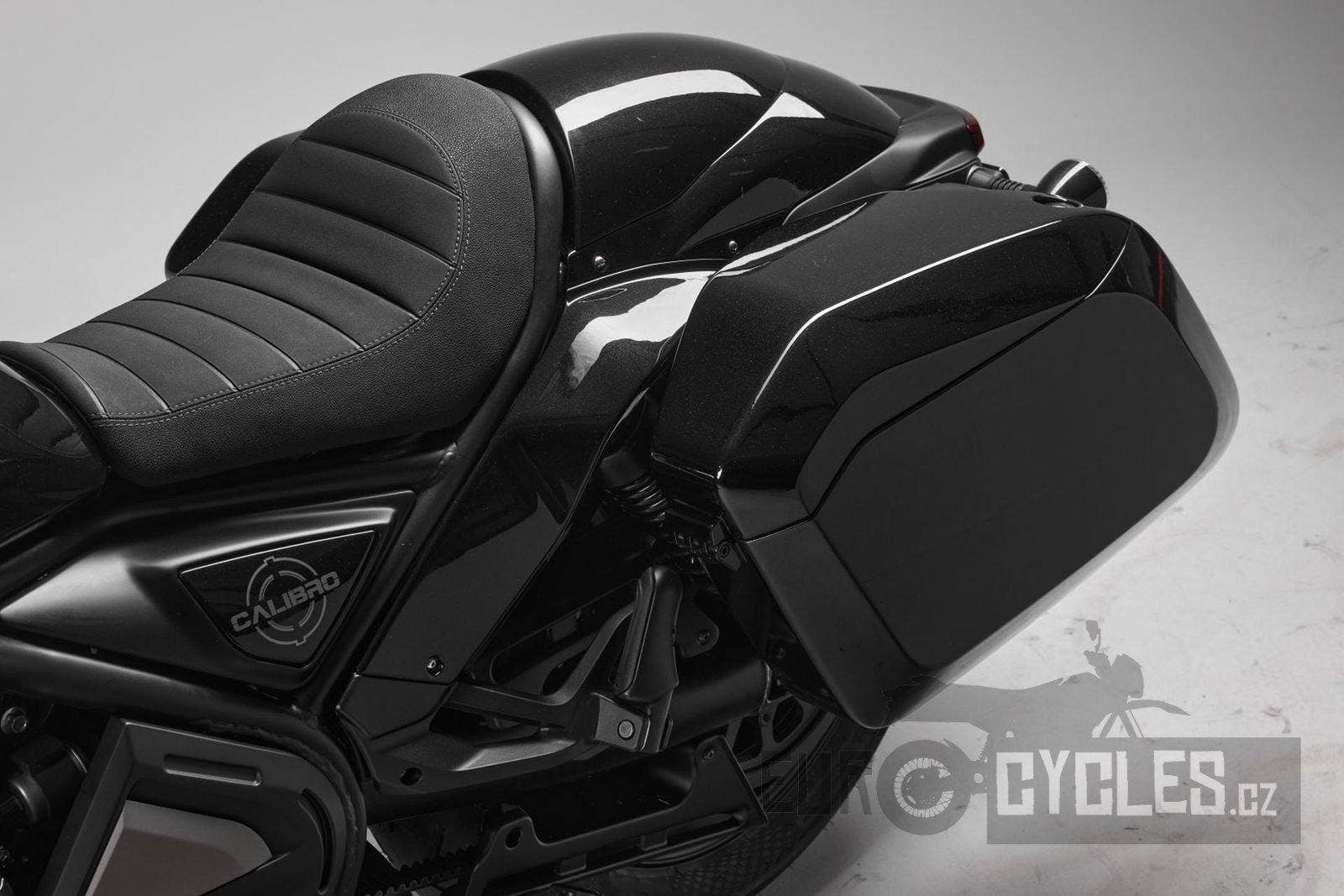 19L pevné kufry jsou hlavním prvkem, který odlišuje klasické Calibro od verze Bagger. Tímto způsobem je jeho vzhled ucelenější a okouzlující. Kufry Quartz Black jsou ve stejné barvě a materiálu a jsou perfektním doplňkem pro tuto verzi Calibro.