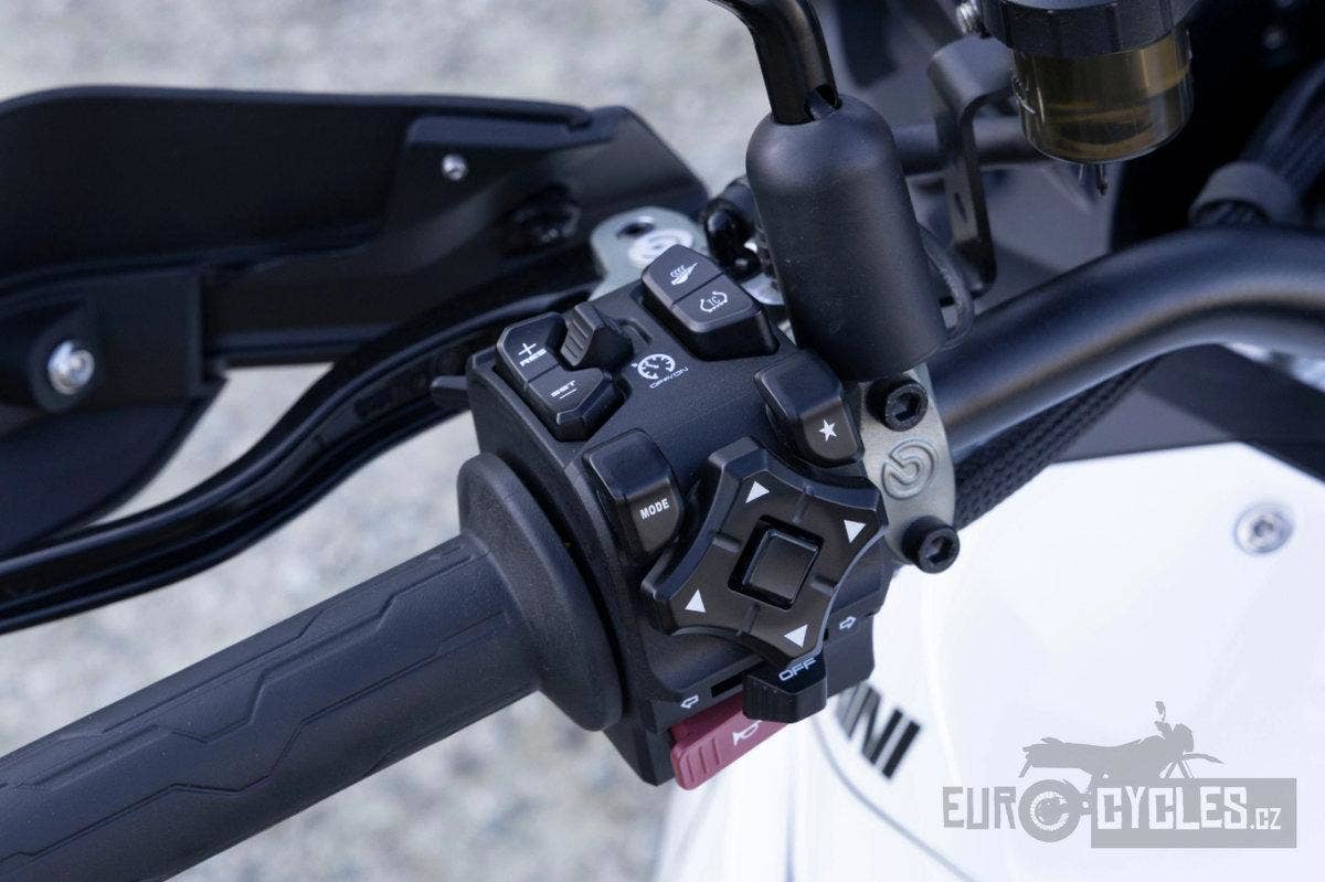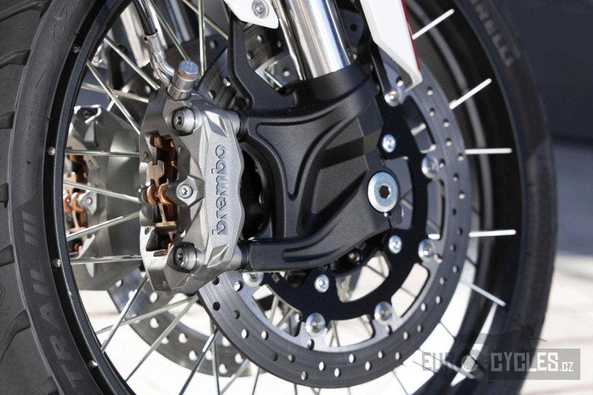 O brzdný výkon se stará prémiový brzdový systém Brembo s dvojitými kotouči vpředu. Motocykl je vybaven náklonovým ABS, kontrolou trakce a funkcí přisvěcování do zatáček, které zvyšují bezpečnost při jízdě v noci i v náročných podmínkách.