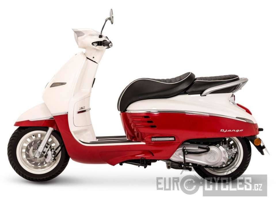 Stylový skútr Peugeot Django se nabízí v několika barevných variantách. Dvoubarevné provedení patří ke stálicím nabídky. Standardní verzi každým rokem doplňují speciální edice, které dokáží zaujmout svým neotřelou barevnou kombinací a dodávají Djangu svěží vzhled a pořádnou dávku sexappealu. Pro konzervativní zákazníky je zde černá varianta s koženým hnědým sedlem, která působí luxusním dojmem.