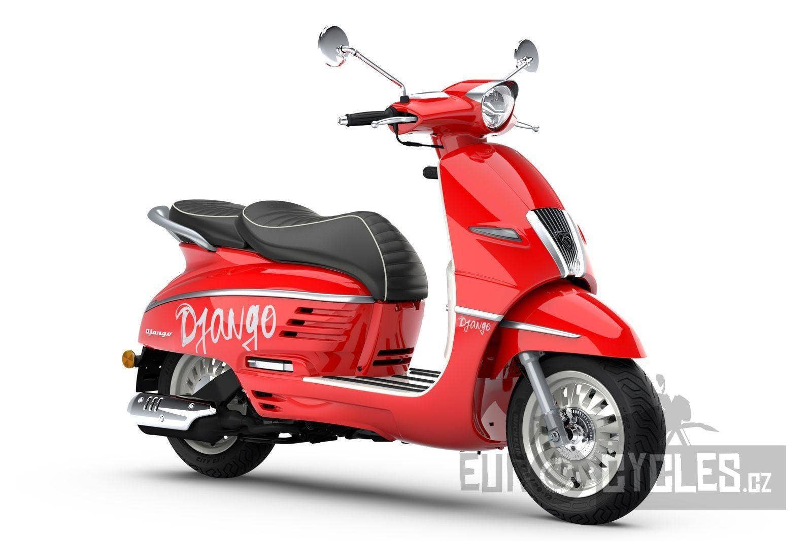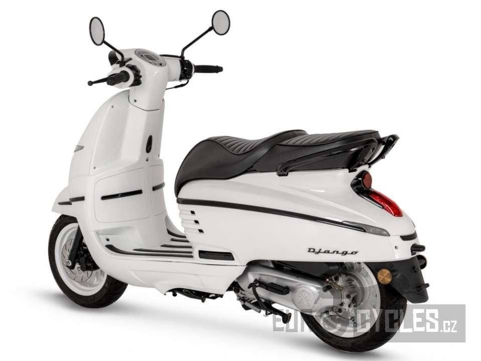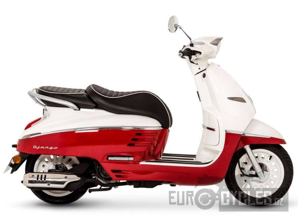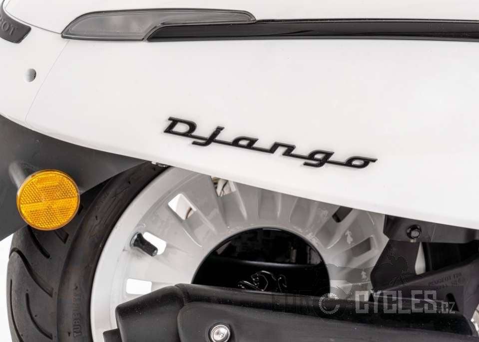Stylový skútr Peugeot Django se nabízí v několika barevných variantách. Dvoubarevné provedení patří ke stálicím nabídky. Standardní verzi každým rokem doplňují speciální edice, které dokáží zaujmout svým neotřelou barevnou kombinací a dodávají Djangu svěží vzhled a pořádnou dávku sexappealu. Pro konzervativní zákazníky je zde černá varianta s koženým hnědým sedlem, která působí luxusním dojmem.