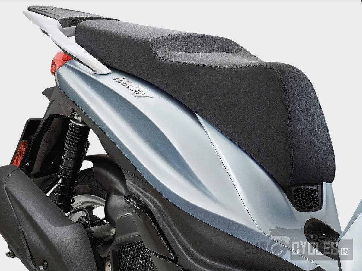 Piaggio Medley je chytrou volbou pro výlety po městě i mimo něj. Jeho zavazadlový prostor nabízí prostor až pro dvě tryskové přilby. S top casem můžete dále rozšířit úložný prostor, takže můžete být na cestách ultraorganizovaní a nemusíte dělat žádné kompromisy. Spolehlivé ABS a standardní systém Start& Stop zajišťují vždy bezpečný a efektivní zážitek z jízdy. LED světlomety a denní svícení zajišťují vynikající viditelnost za všech podmínek. Digitální LCD přístrojový panel vám poskytuje všechny důležité informace o vozidle.