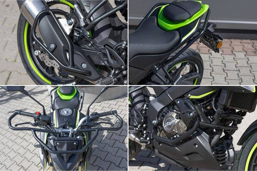 Při koupi SRK 125 S si můžete tento motocykl dále vylepšit o praktický KIT AUTOŠKOLA. Tento set ochranných padacích rámů Vám umožní dokonale ochránit rám, motor a plasty motocyklu, což je skvělé zejména pro žáky autoškol, či naprosté začátečníky v ježdění na motocyklech. Tento kit samožřejmě ochrání i všechny důležité komponenty k jízdě jako jsou páčky, řídítka, světlomet, výfuk atd. Pro objednání tohoto příslušenství a více informací o tomto produktu kontaktujte Vašeho autorizovaného prodejce QJMOTOR. Celý kit stojí 9.990, Kč vč. DPH.
