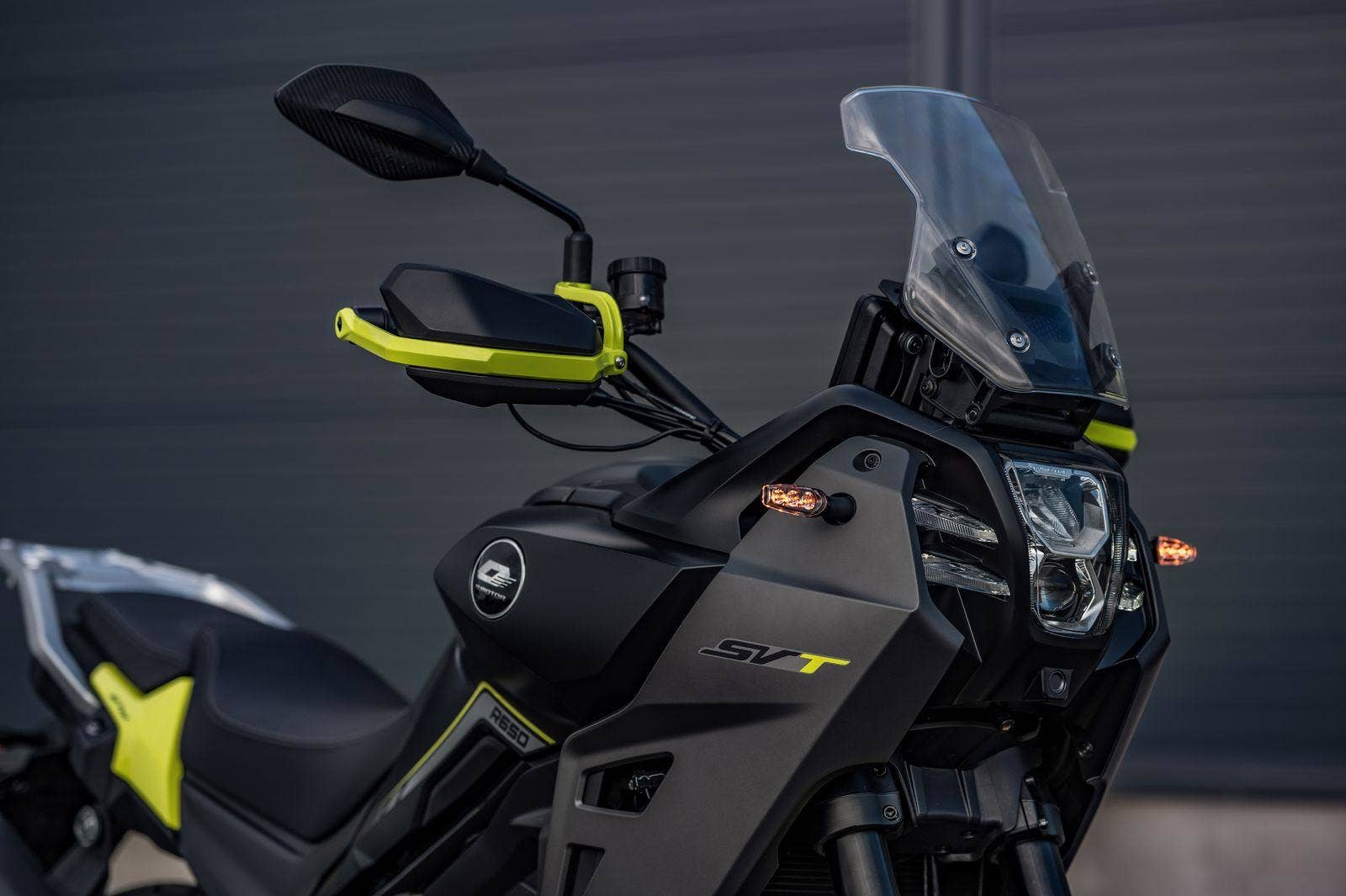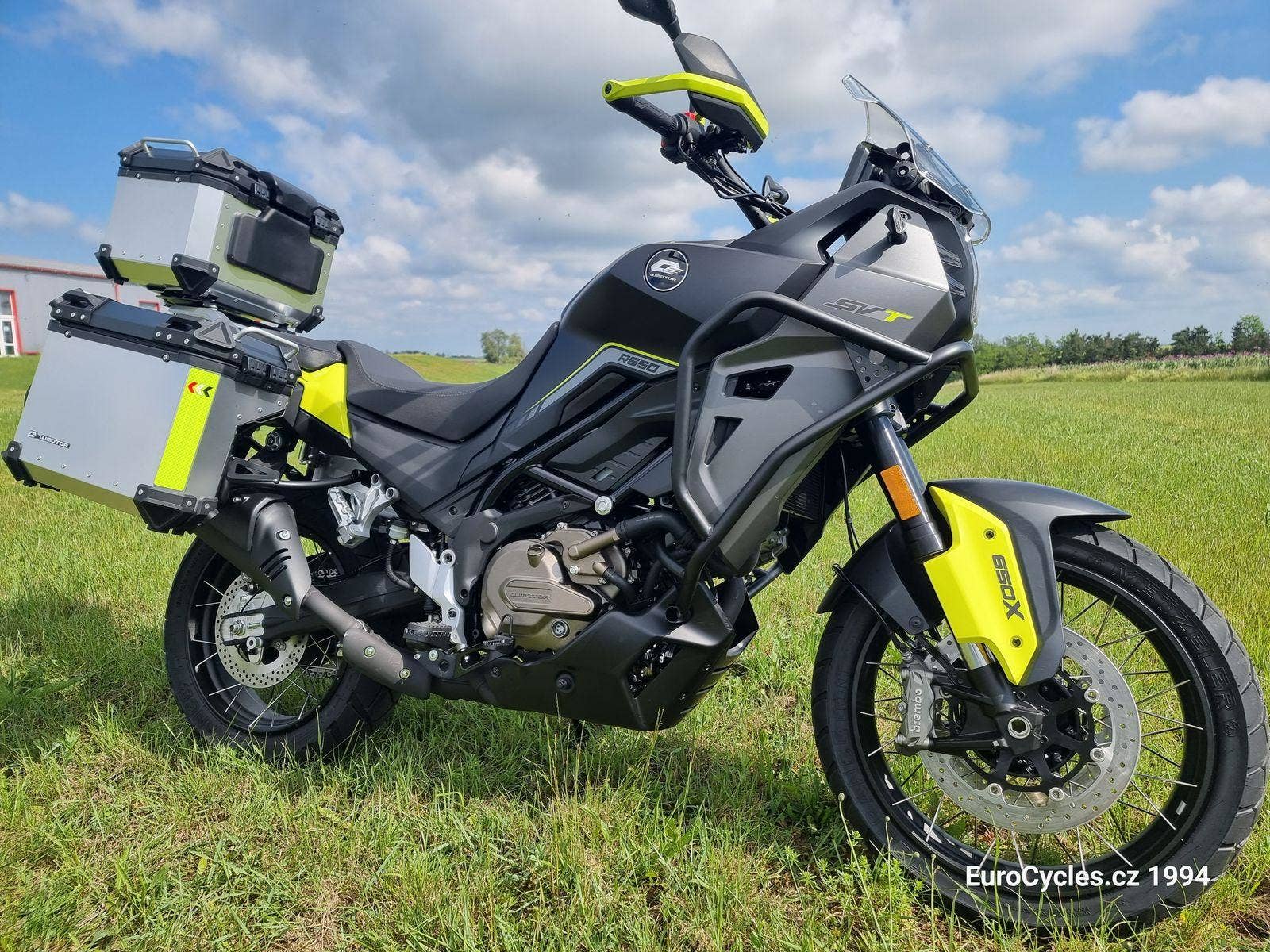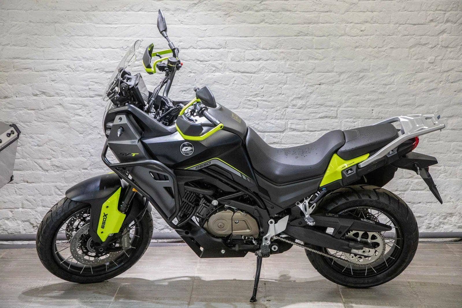 Zažijte Dakar na vlastní kůži s tímto velmi robustním a výkonným adventure motocyklem! Jak už je u QJMotor zvykem, tak i SVT 650 X koupíte s bohatou cestovní výbavou - jmenujme například vyhřívané gripy, sedadlo řidiče, zesílené originální blástry, USB zásuvku a barevný 7mi placový TFT přístrojový panel s indikací tlaků v obou pneumatikách! To vše skvěle doplňuje parádní véčkový motor, kvalitní podvozek s velkými zdvihy. Samozřejmostí jsou brzdy Brembo a ABS od firmy Bosch.