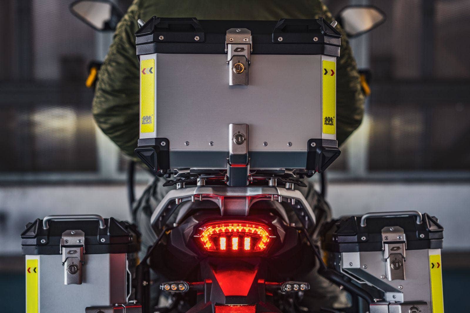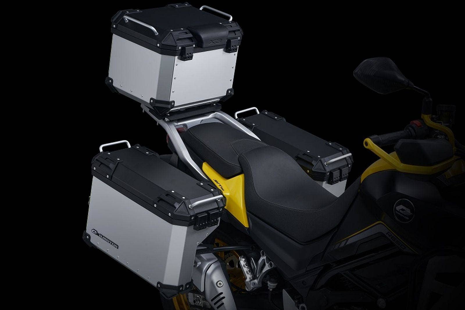 K SVT 650 je nyní v ceně kvalitní originální sada uzamykatelných hliníkových kufrů. Horní kufr a boční kufry lze sejmout v několika jednoduchých krocích a nabízejí dostatečný úložný prostor pro každou Vaši cestu. Horní kufr s úložným prostorem 45 litrů a dva boční kufry o objemu 37 a 30 litrů nabízejí dostatek místa pro Vaše cestovní vybavení. Cena sady 3 kusů samostaně dodaných kufrů je 24 990 Kč!
