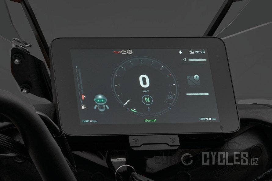 Velký 7" barevný TFT displej zobrazuje velké množství informací, a nově navíc také tlak a teplotu v pneumatikách díky senzorům, které má tento motocykl v kolech. TFT panel je skvěle čitelný za jakéhokoliv počasí, protože je vybaven automatickým nastavením jasu a má též denní a noční režim. Kromě toho má schopnost propojit se s mobilním telefonem jezdce, s možností zobrazení navigace, která zobrazuje i aktuální provoz, nebo také umožňuje zrcadlit obrazovku Vašeho mobilního telefonu. Dále přístrojový panelu umožňuje spravovat a prohlížet si příchozí hovory. Pod panelem je také USB port pro nabíjení Vašich elektronických zařízení.