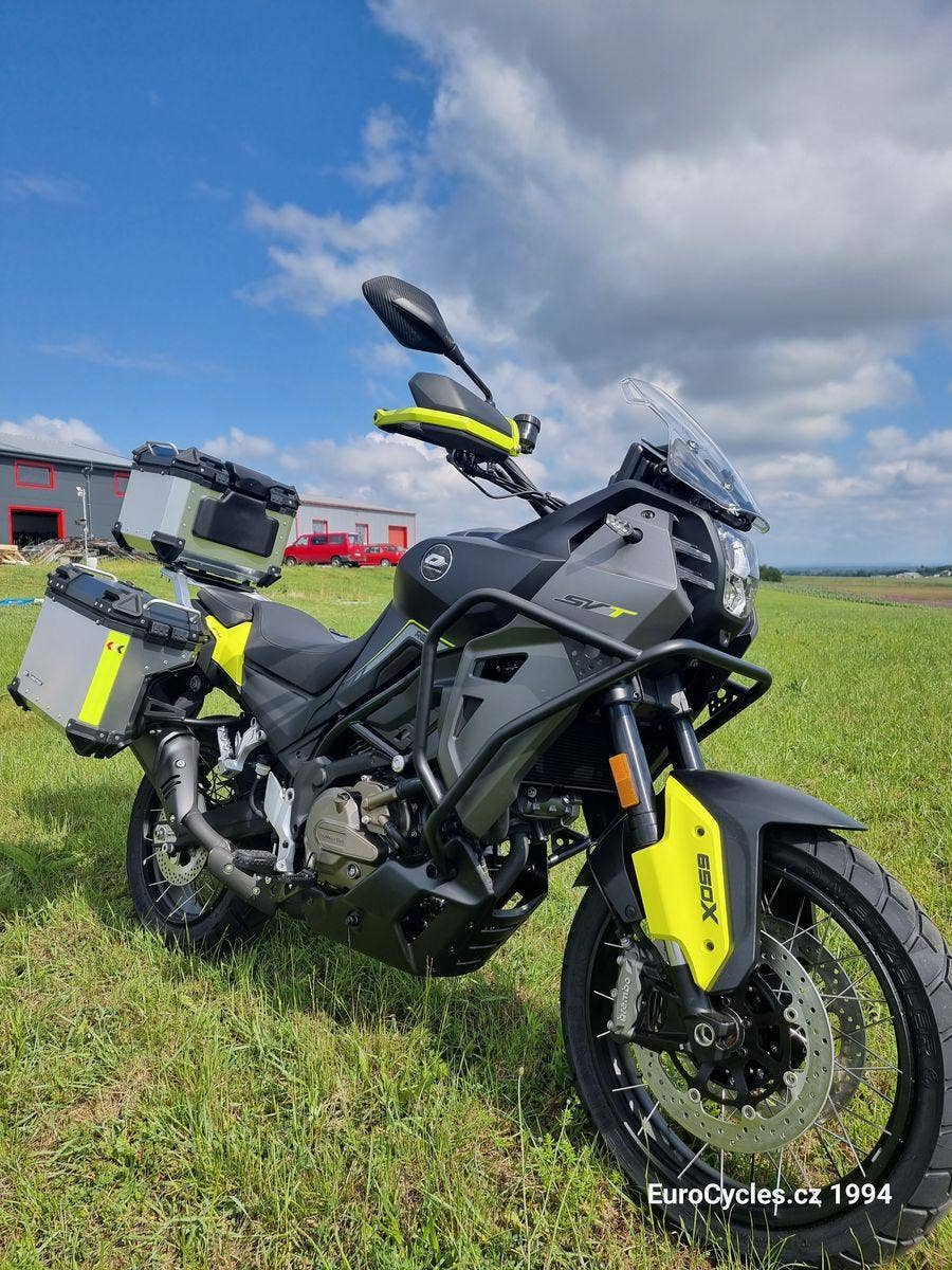 Zažijte Dakar na vlastní kůži s tímto velmi robustním a výkonným adventure motocyklem! Jak už je u QJMotor zvykem, tak i SVT 650 X koupíte s bohatou cestovní výbavou - jmenujme například vyhřívané gripy, sedadlo řidiče, zesílené originální blástry, USB zásuvku a barevný 7mi placový TFT přístrojový panel s indikací tlaků v obou pneumatikách! To vše skvěle doplňuje parádní véčkový motor, kvalitní podvozek s velkými zdvihy. Samozřejmostí jsou brzdy Brembo a ABS od firmy Bosch.