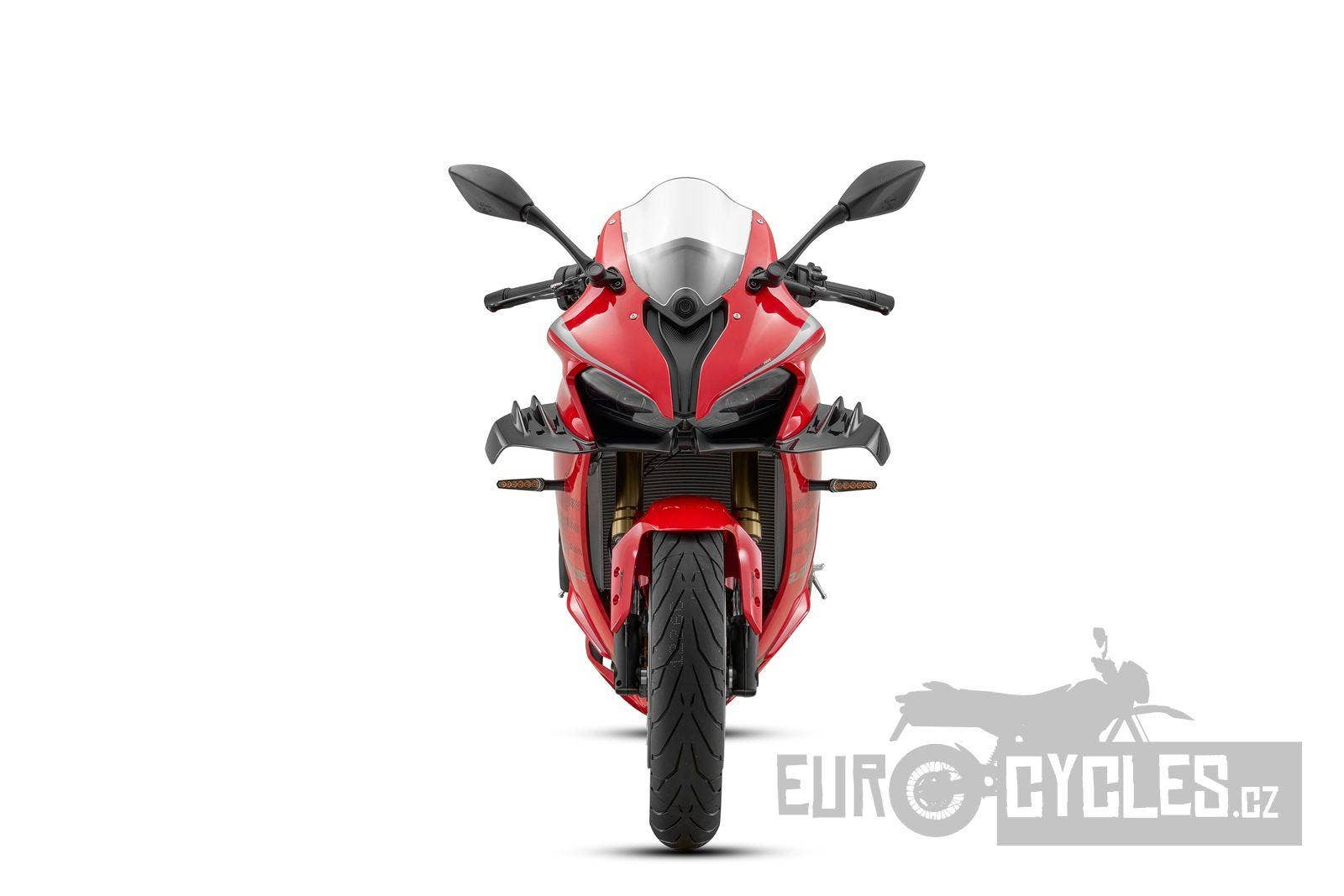 Model 2026 přichází se zásadními změnami. Ačkoli z venku změnu takřka nepoznáte, uvnitř je jich opravdu hodně. Nová generace SRK800RR má nový rám, původní ocelový nahradil hliníkový rám typu deltabox. Změnila se i celá geometrie motocyklu, což zajistilo lepší ovladatelnost a hlavně stabilitu při jízdě ve vysokých rychlostech. Upraven byl i motor. Nyní má mnohem silnější střední pásmo a výkon lineárně roste až k omezovači. Nově má SRK800RR elektronický plyn, díky kterému bylo možné přidat oboustranný quickshifter. Podařený dynamický a agresivní design, který vzešel z pera italských designerů není potřeba měnit, proto zůstává prakticky bezezměny, až na nové barevné provedení.