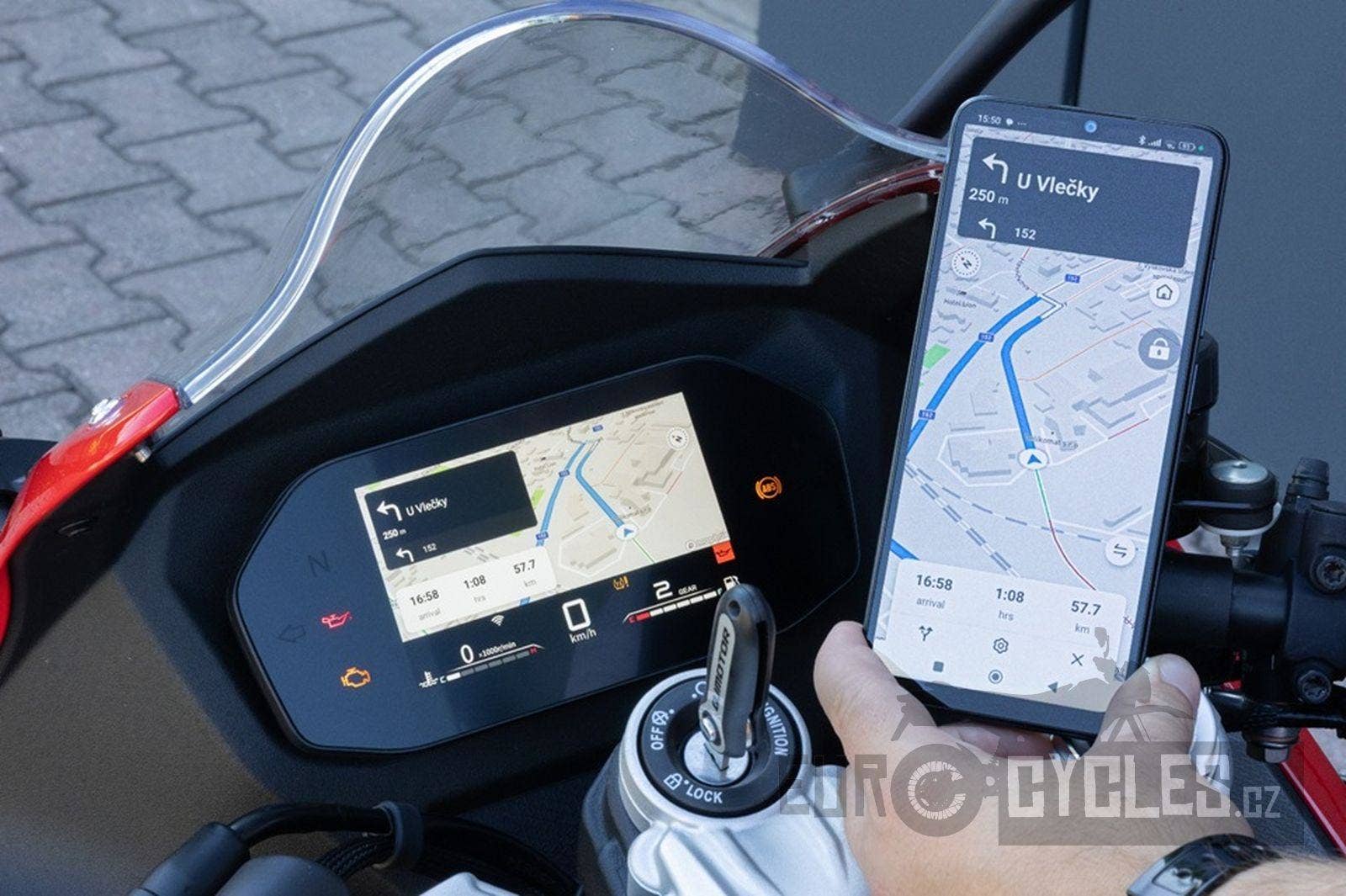 Motocykly QJMOTOR, které jsou od modelového roku 2024 vybaveny barevným TFT panelem, lze propojit s chytrým telefonem jezdce. Tato konektivita funguje jak pro systémy Android, tak i iOS. Pro jezdce to znamená, že může zrcadlit obsah z displeje svého smartphonu na přístrojový panel motocyklu. Toto lze využít jak pro zobrazení navigace, ale i pro zobrazení jakéhokoliv jiného obsahu z mobilního telefonu. Pokud jste náročný jezdec a chcete si zobrazovat navigaci s aktuálními dopravními informacemi, je možné stáhnout si aplikaci QJMOTOR, která Vám po zaplacení malého poplatku zpřístupní i tuto funkci.