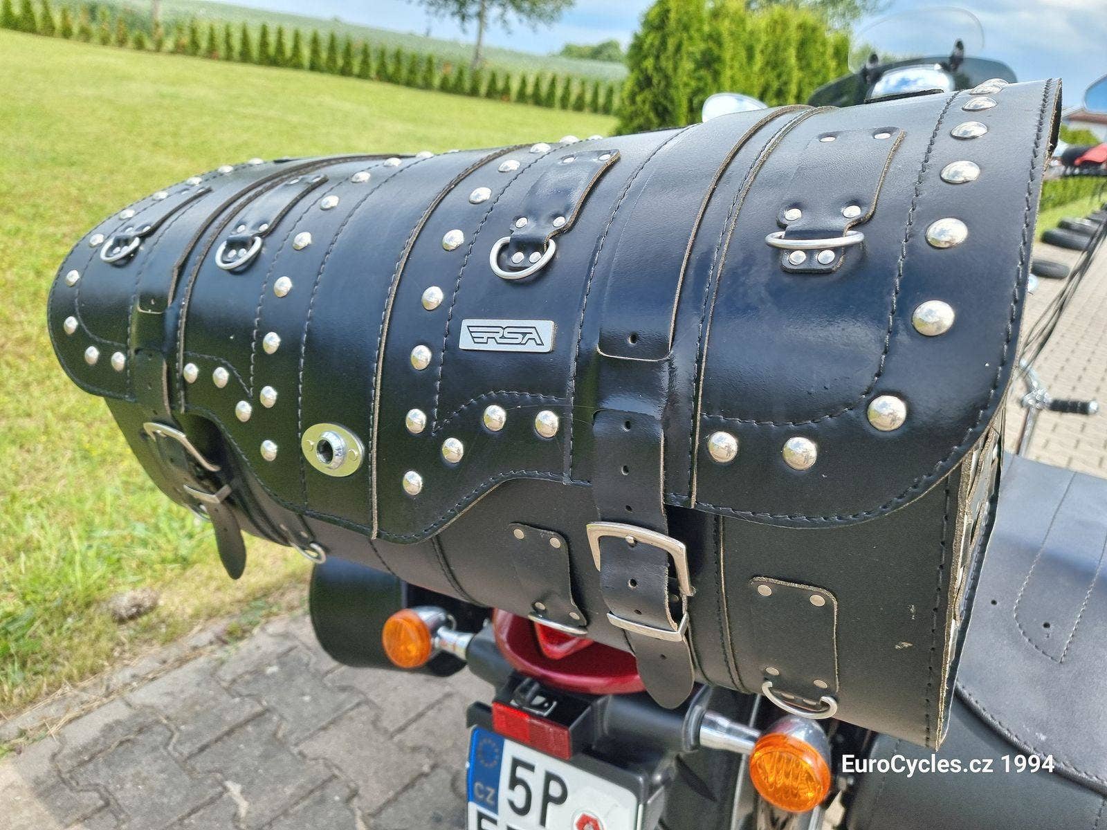 Dovoz z EU v roce 2017. Mnoho doplňků: rolka, zadní kožený válec, kožené boční brašny, držák nápojů, Gipro ukazatel zařazené rychlosti, větrný štít s deflektorem, kamerový záznamový systém s přední a zadní kamerou, padací rám a předstupačky.