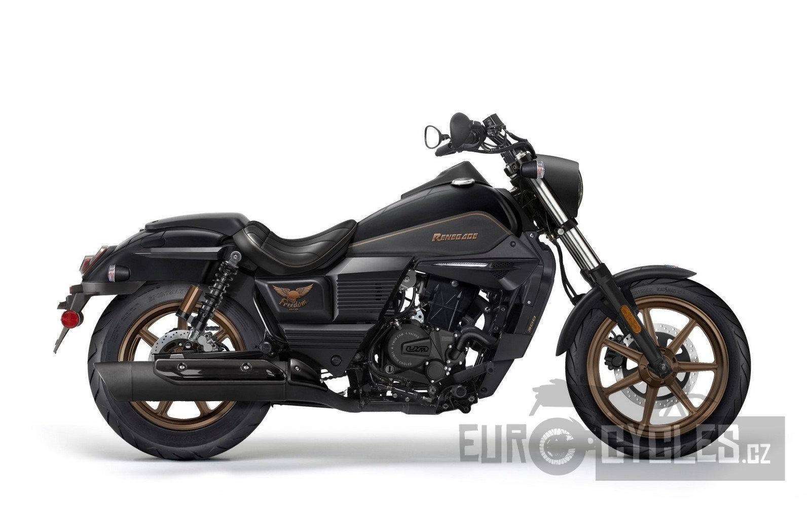 UM Renegade Freedom 300 je stylový cruiser, který kombinuje klasický design s moderními technologiemi a jízdním projevem. Motocykl zaujme svou nízkou siluetou, uvolněným posedem a autentickým vzhledem, který odkazuje na tradiční americké cruisery.
