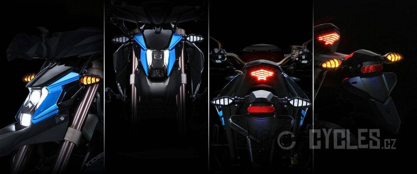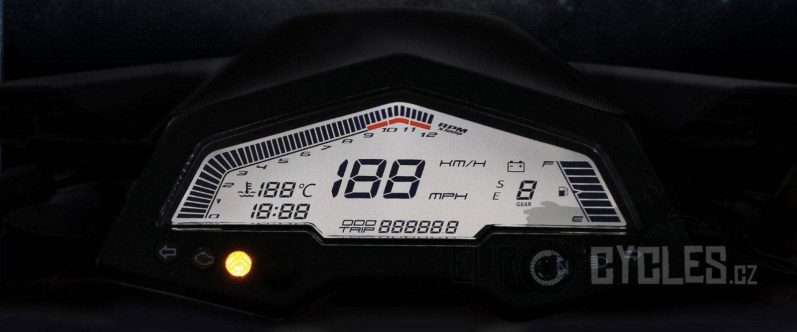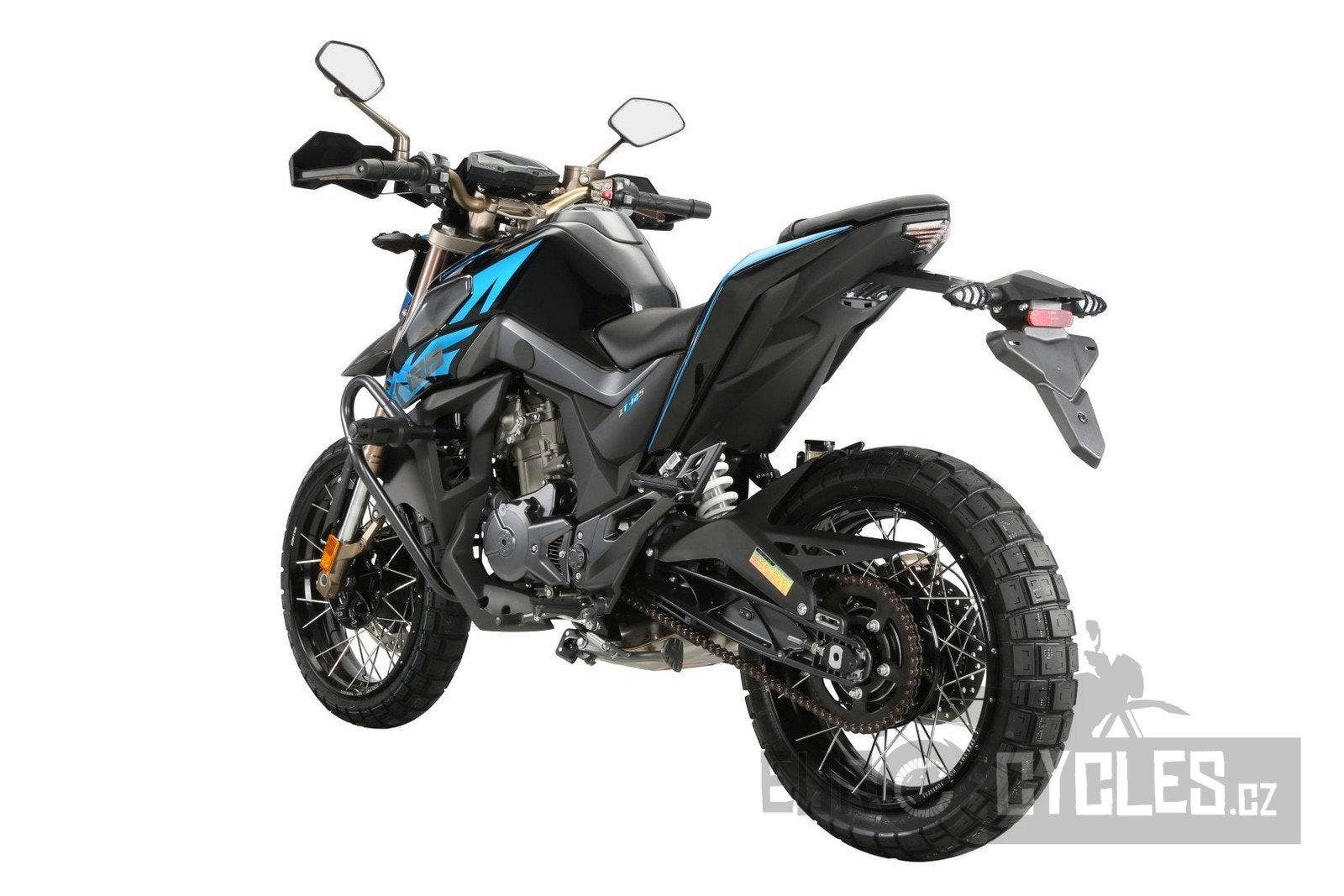 Dravá motorka s moderním vzhledem se dvěma režimy jízdy - ECO a SPORT. Startování a zabezpečení motocyklu plně elektronicky bez použití klíčku, s transpondérem s dosahem 1,5 metru. Do výbavy patří také velkokapacitní baterie, která poskytuje dostatečnou záruku pro startování v chladném počasí a využívání doplňků, jako je třeba USB nabíječka. Ta má dva USB porty a může dodávat vysoký proud 2,1 A pro nabíjení dvou zařízení USB současně. Samozřejmostí je kompletní LED osvětlení pro bezpečnou a přehlednou jízdu. LCD displej vám poskytne stručný a jednoduchý přehled o všech údajích. Díky válci motoru vyrobenému z čistého hliníku je vnitřní stěna válce tenká, takže teplo z válce je rychle odváděno pryč. Což přispívá k vyššímu výkonu. Galvanizovaná olejová nádrž zase zabraňuje ucpávání filtru oleje v důsledku rzi. Systém BOSCH ABS 9.1M umožňuje řidiči ovládat motocykl bez ohledu na to, jestli jedete v písku, dešti nebo sněhu. Systém ABS vám přinese jistotu. Zadní centrální tlumič využívá vestavěný zásobník naplněný vysokotlakým dusíkem ke snížení teploty hydraulického oleje při tlumení. Sedlo jezdce a spolujezdce je rozdělené ve sportovním stylu a jeho pohodlná výplň a potah zaručují příjemnější jízdu. Hliníková zadní kyvná vidlice díky kombinaci materiálů a speciálnímu procesu odlévání má nízkou hmotnost a dobrou tuhost. Do základní výbavy patří i padací ochranné rámy, které poskytnou ochranu jak motocyklu, tak jezdci. Stejně tak chrániče páček s blastery.